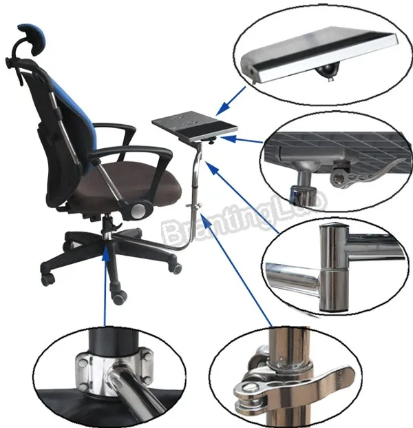 Comprar BL OK031S soporte de escritorio para portátil con sujeción de silla de movimiento completo multifuncional con ventilador, alfombrilla de ratón cuadrada y sujeción de brazo para silla