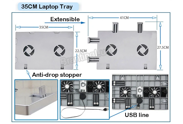 Soporte para portátil con ventilador: 35x22,5 cm extensible a 41x27,5 cm