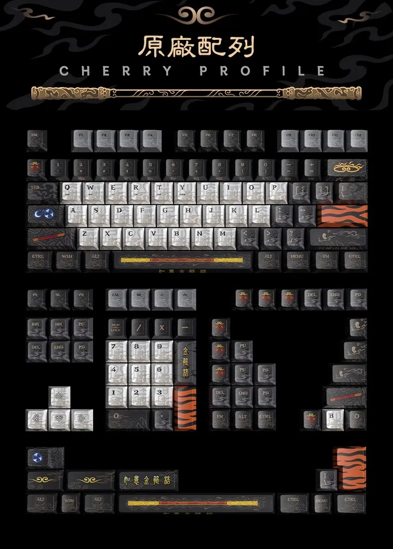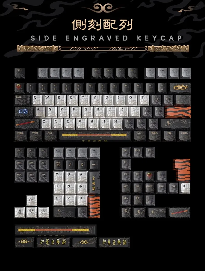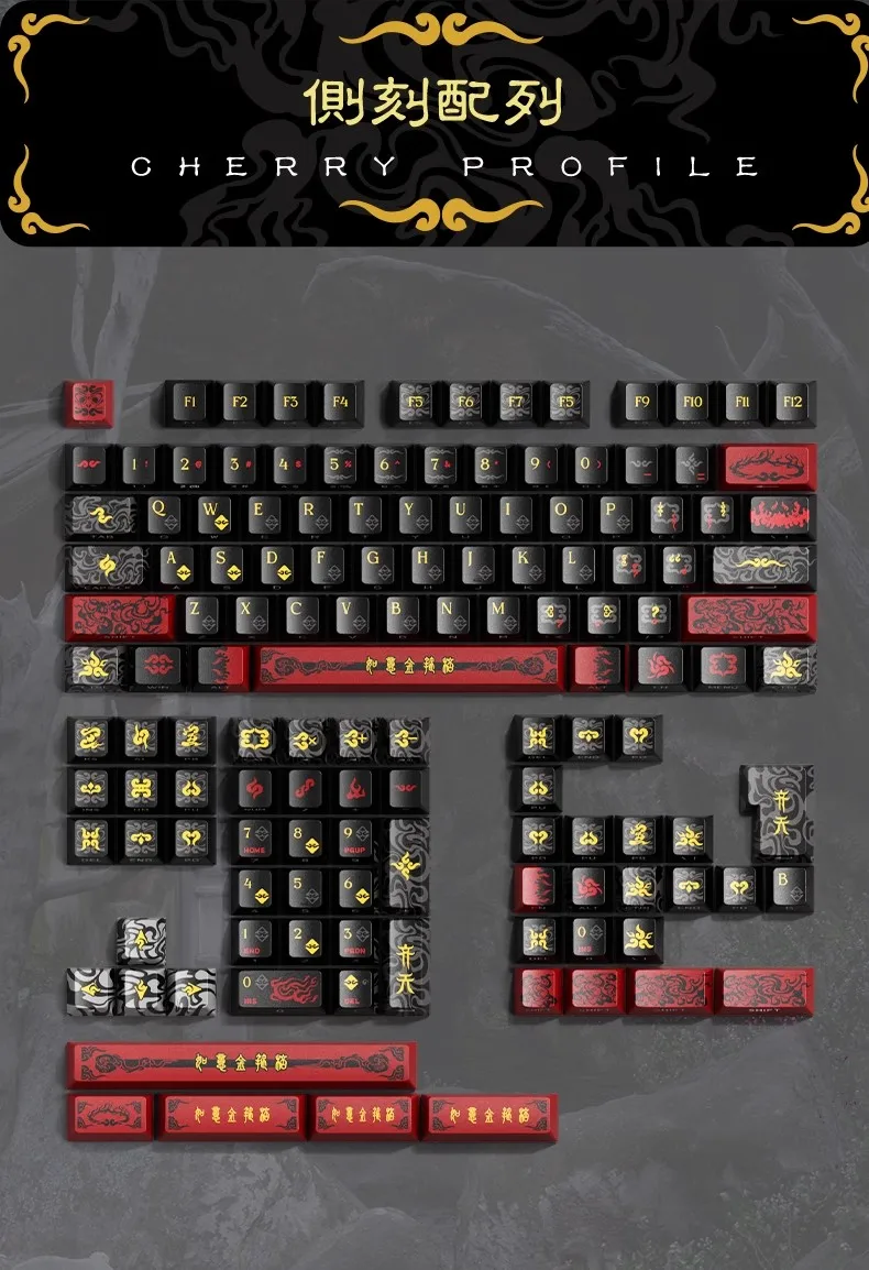 Black Myth: Wukong Keycap Set Custom Cherry Artisan Keycap Anime Point Key Caps Side Carving Teclado mecánico Accesorio de juego