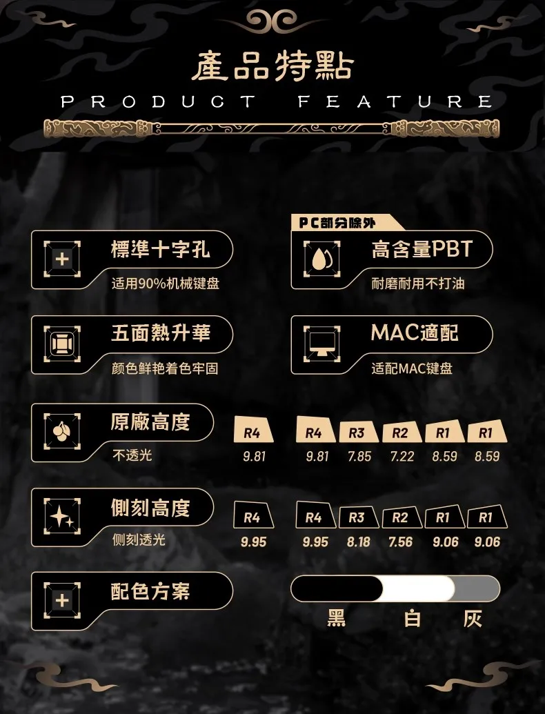 Comprar Black Myth: Wukong Keycap Set, Cherry Artisan personalizado, Anime Point Key Caps, tallado lateral, Teclado mecánico, accesorio de juego