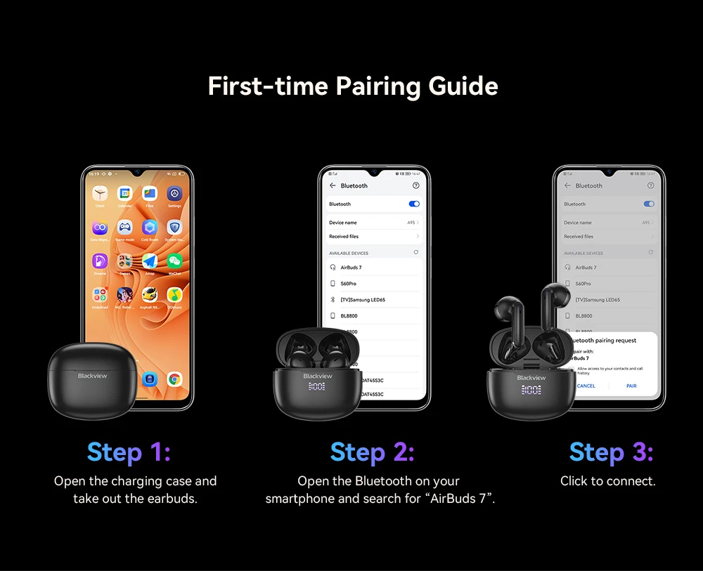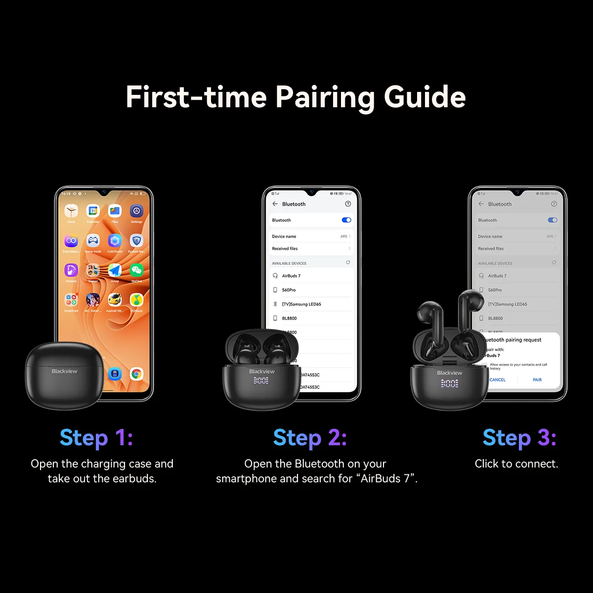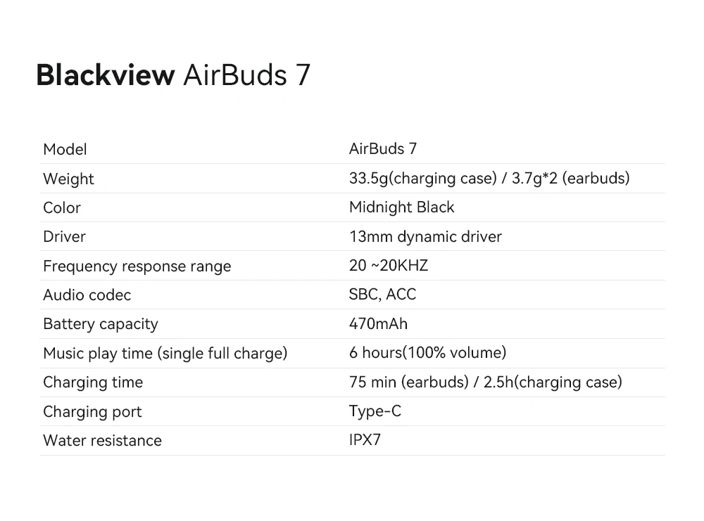 Comprar Blackview-auriculares inalámbricos AirBuds 7 para teléfono móvil, audífonos TWS con Bluetooth, micrófono, carga inalámbrica