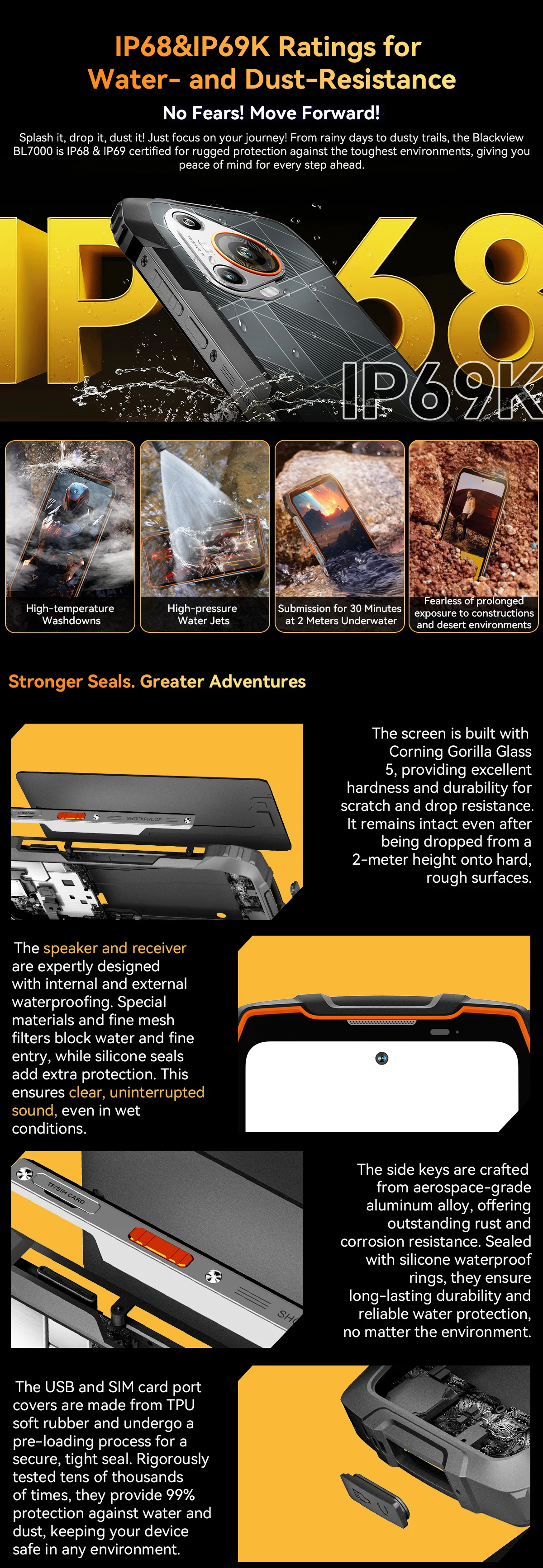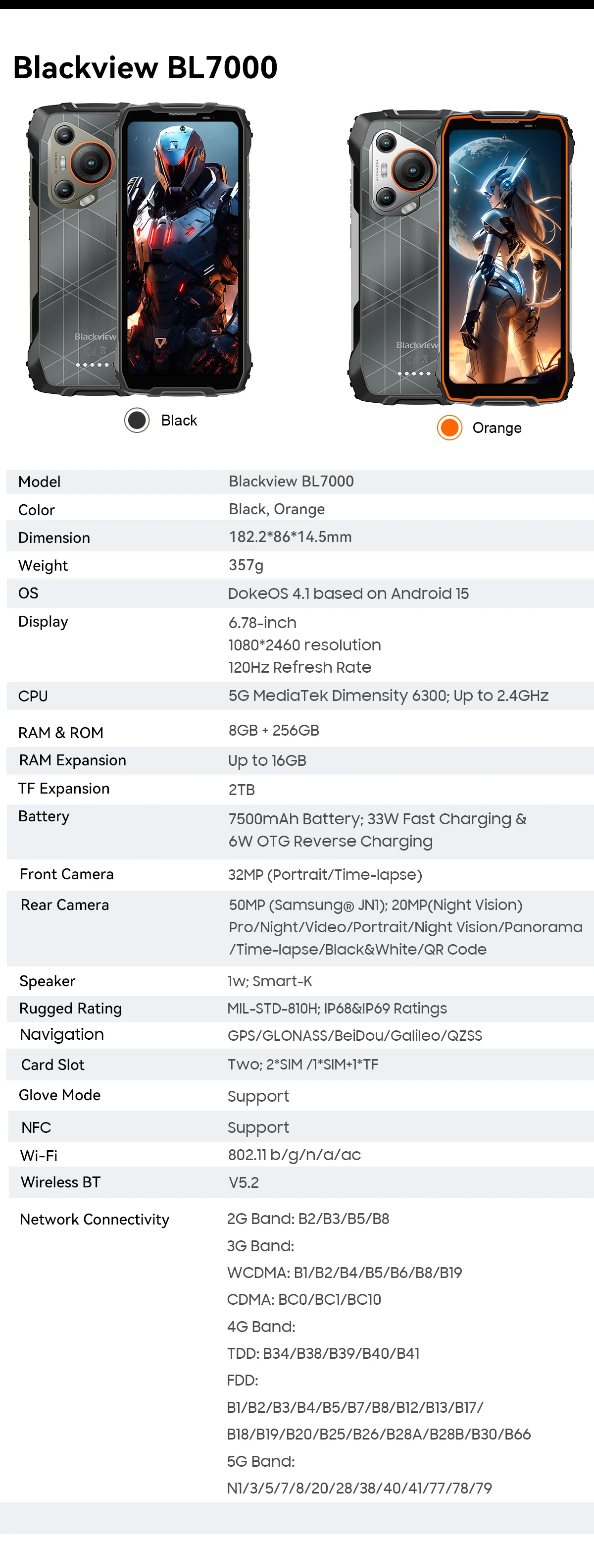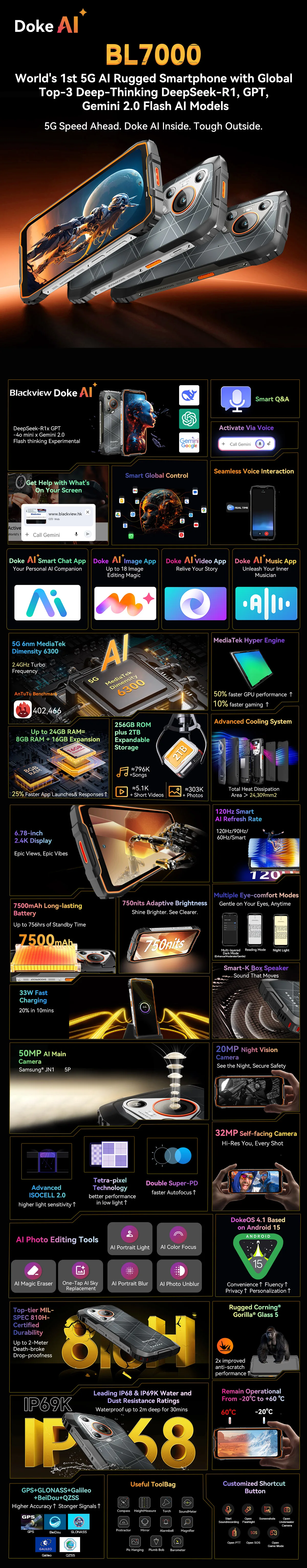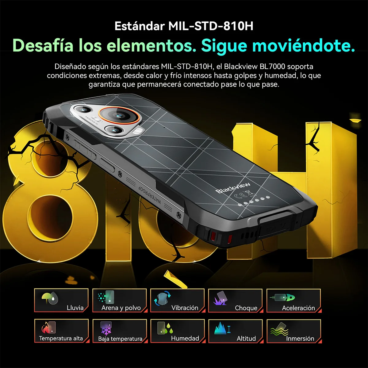 Comprar BLACKVIEW BL7000 5G AI Teléfono resistente Deepseek GPT Android 15 Smartphone, Pantalla HD+2.4K de 6,78" 120Hz, 24(8+16)GB 256GB, 7500Amh