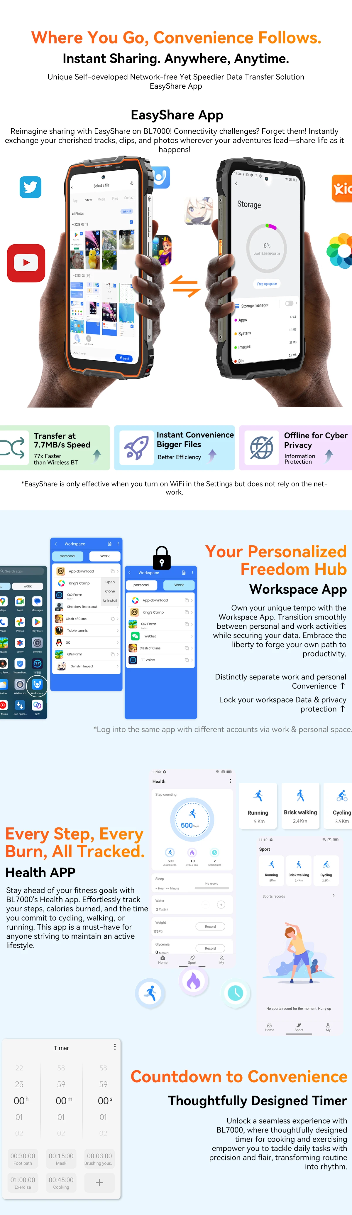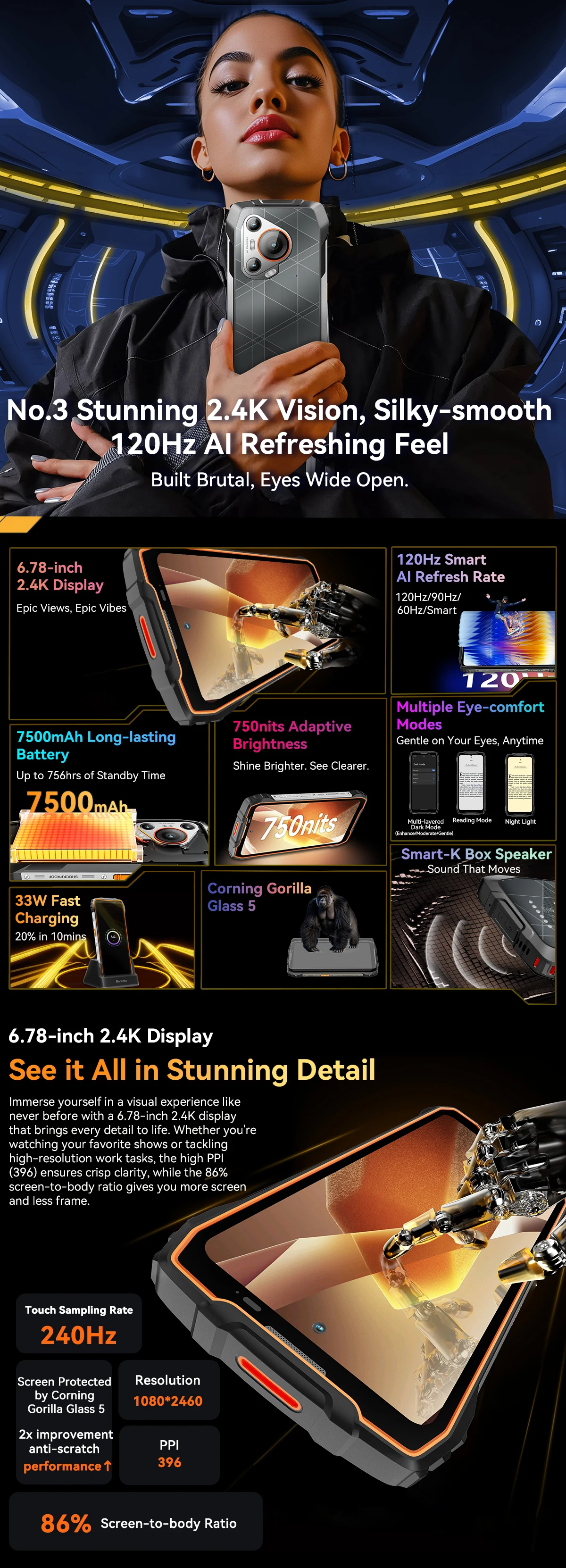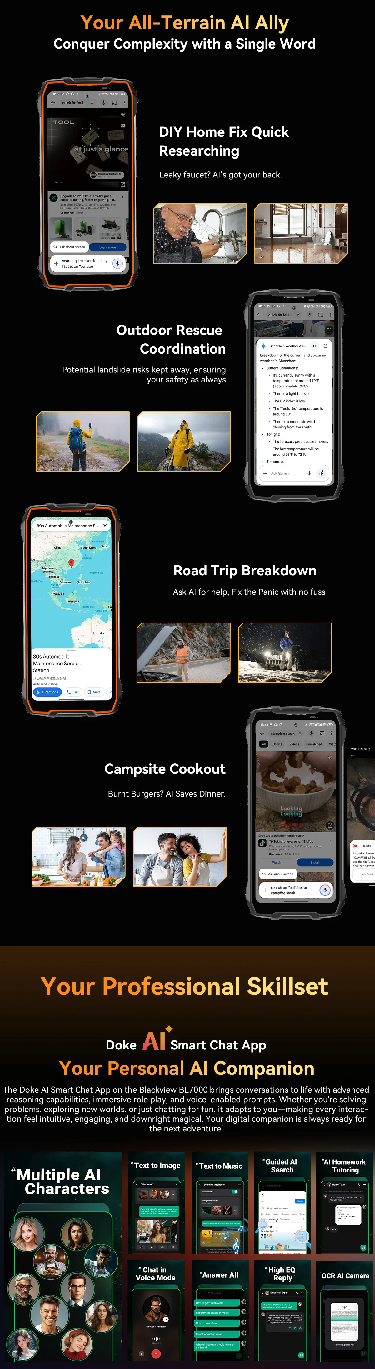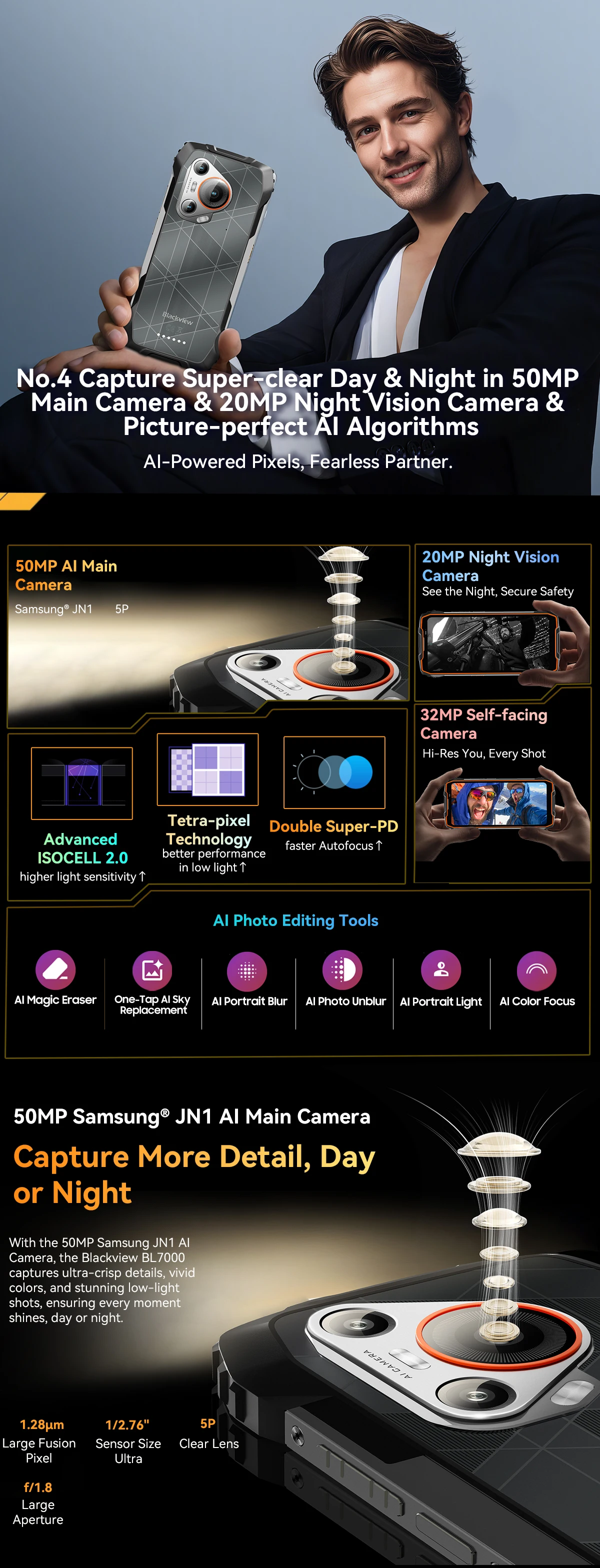 Comprar BLACKVIEW BL7000 5G AI Teléfono resistente Deepseek GPT Android 15 Smartphone, Pantalla HD+2.4K de 6,78" 120Hz, 24(8+16)GB 256GB, 7500Amh
