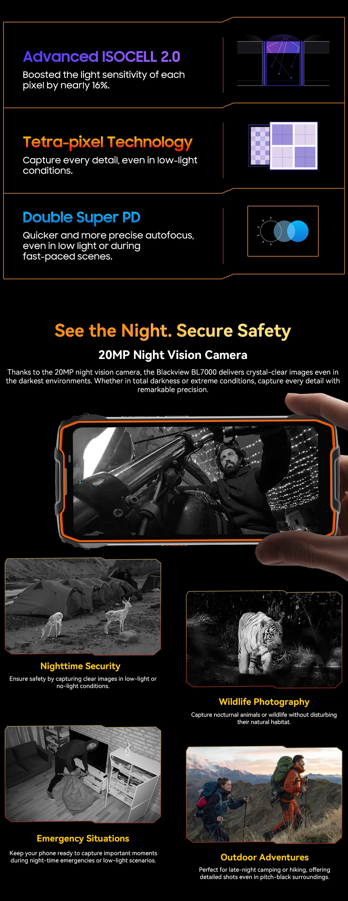 Cámara trasera: visión nocturna de 50MP + 20MP