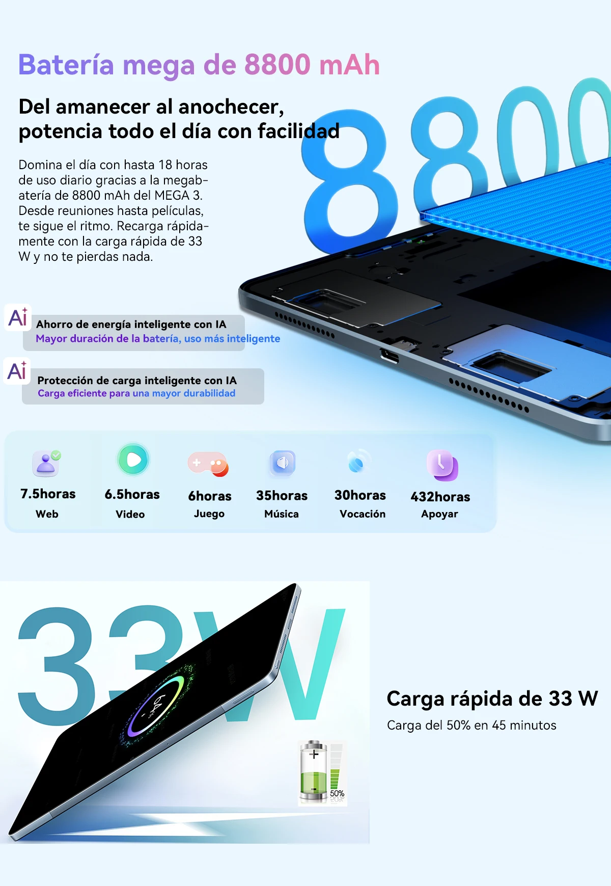 Batería :8800 mAhcon carga rápida de 33W