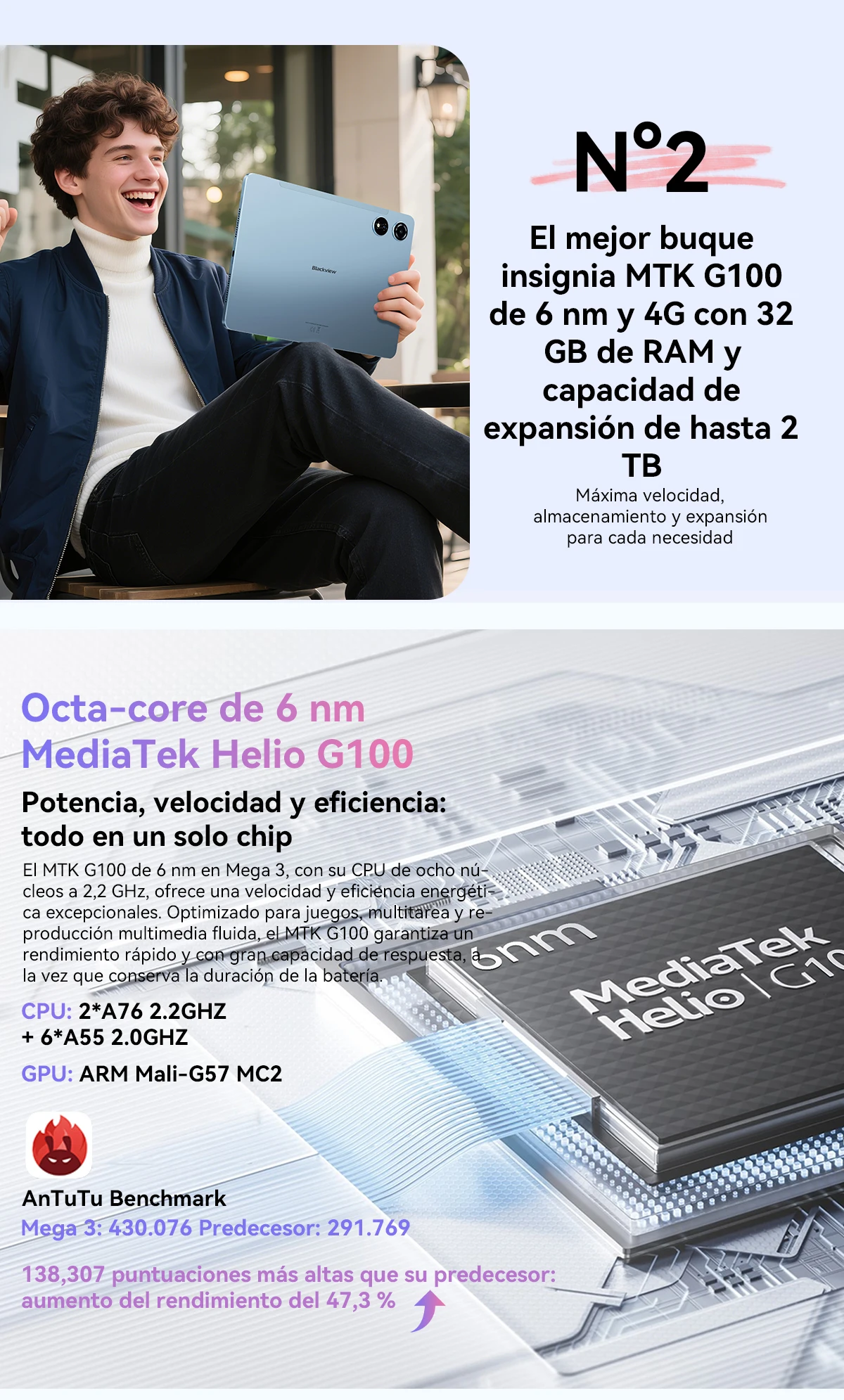 CPU:MediaTek G100; octa-core