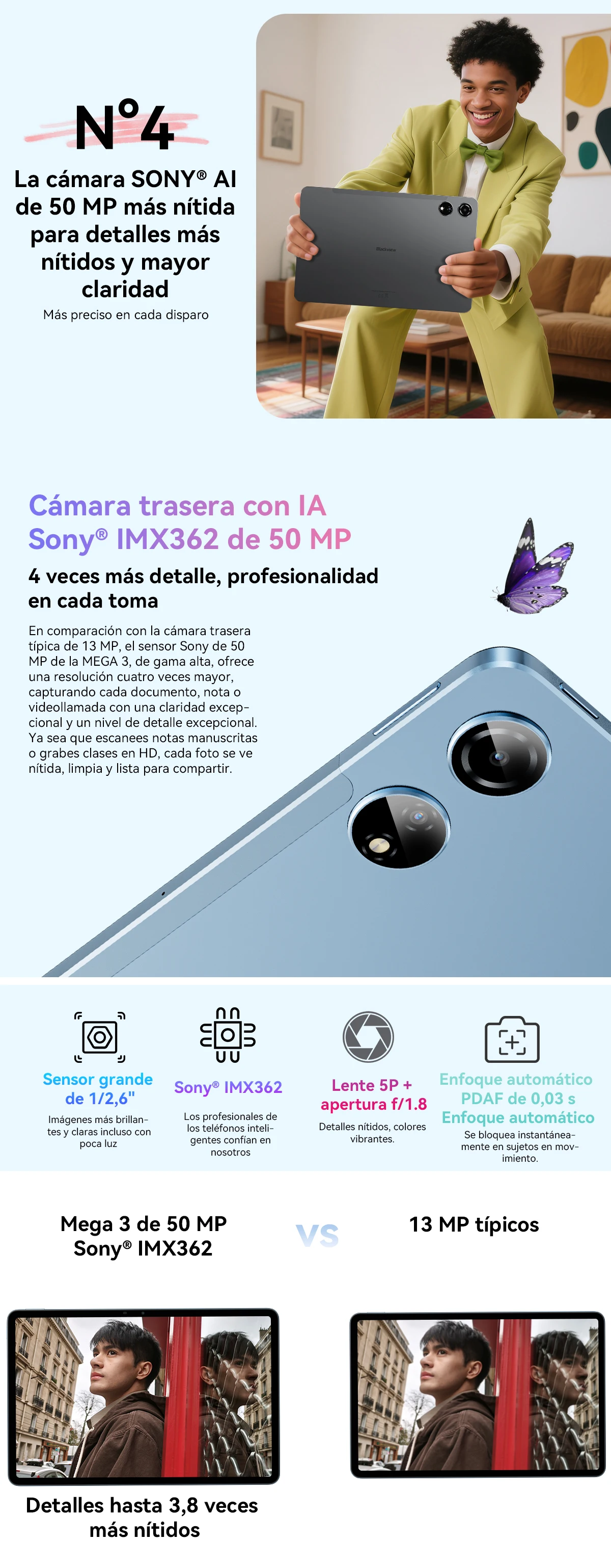Cámara:50Cámara trasera MP; Cámara frontal de 13MP