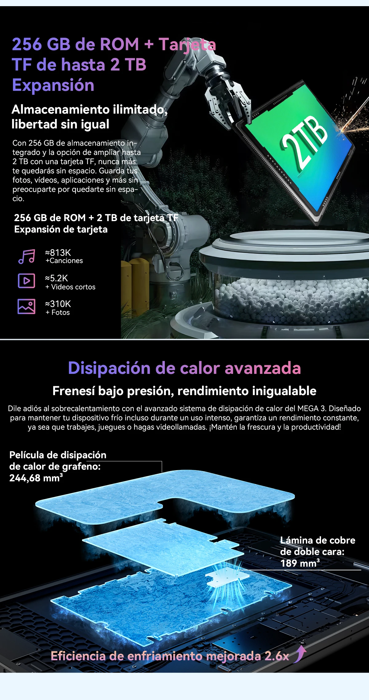 ROM:256 GB + 2 TB de expansión