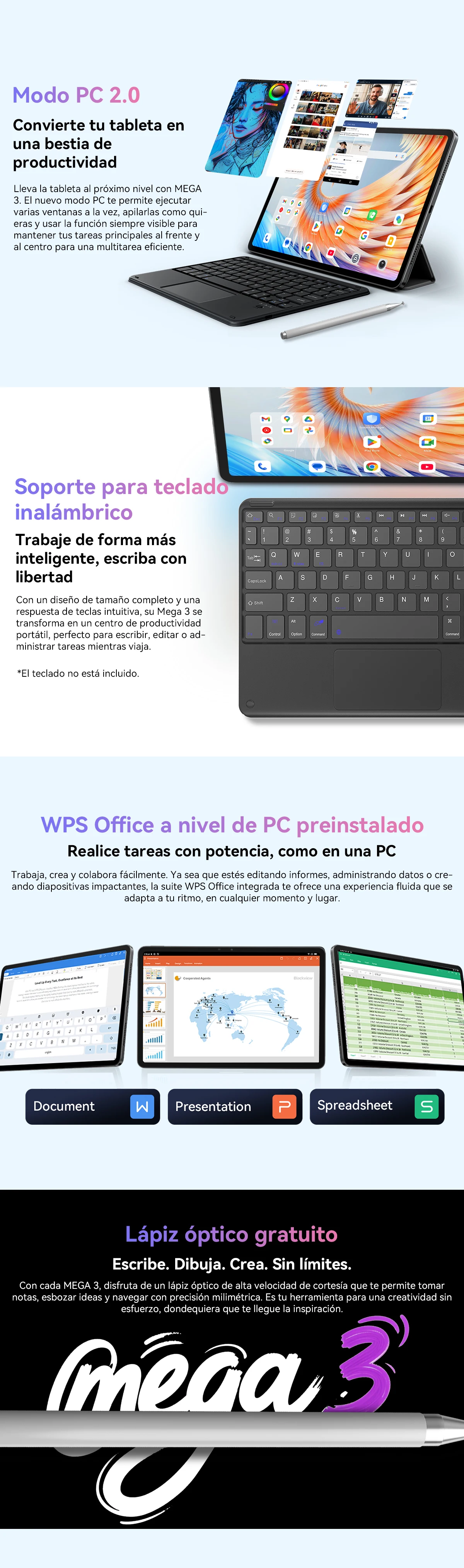 Me encanta el dispositivo. Es exactamente lo que pedí. Muy bonito, incluye el teclado y la expansión de memoria de 36 GB.