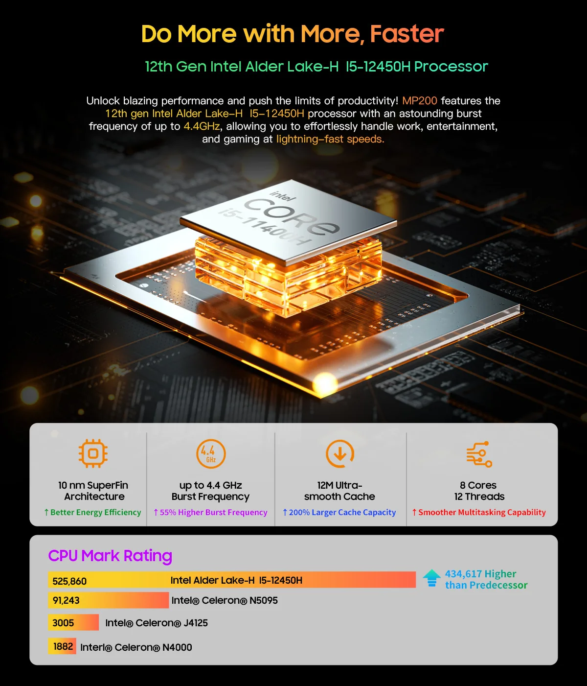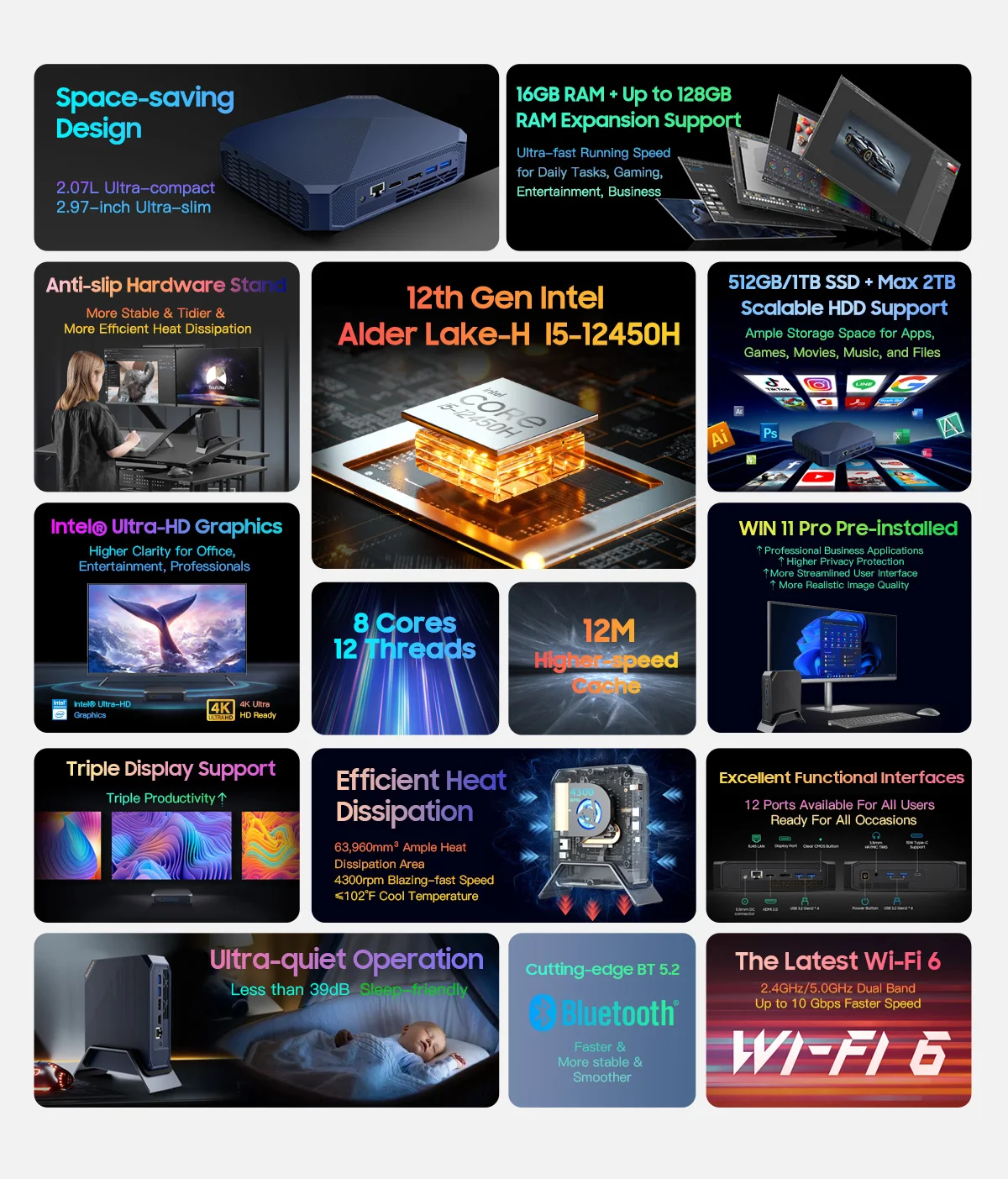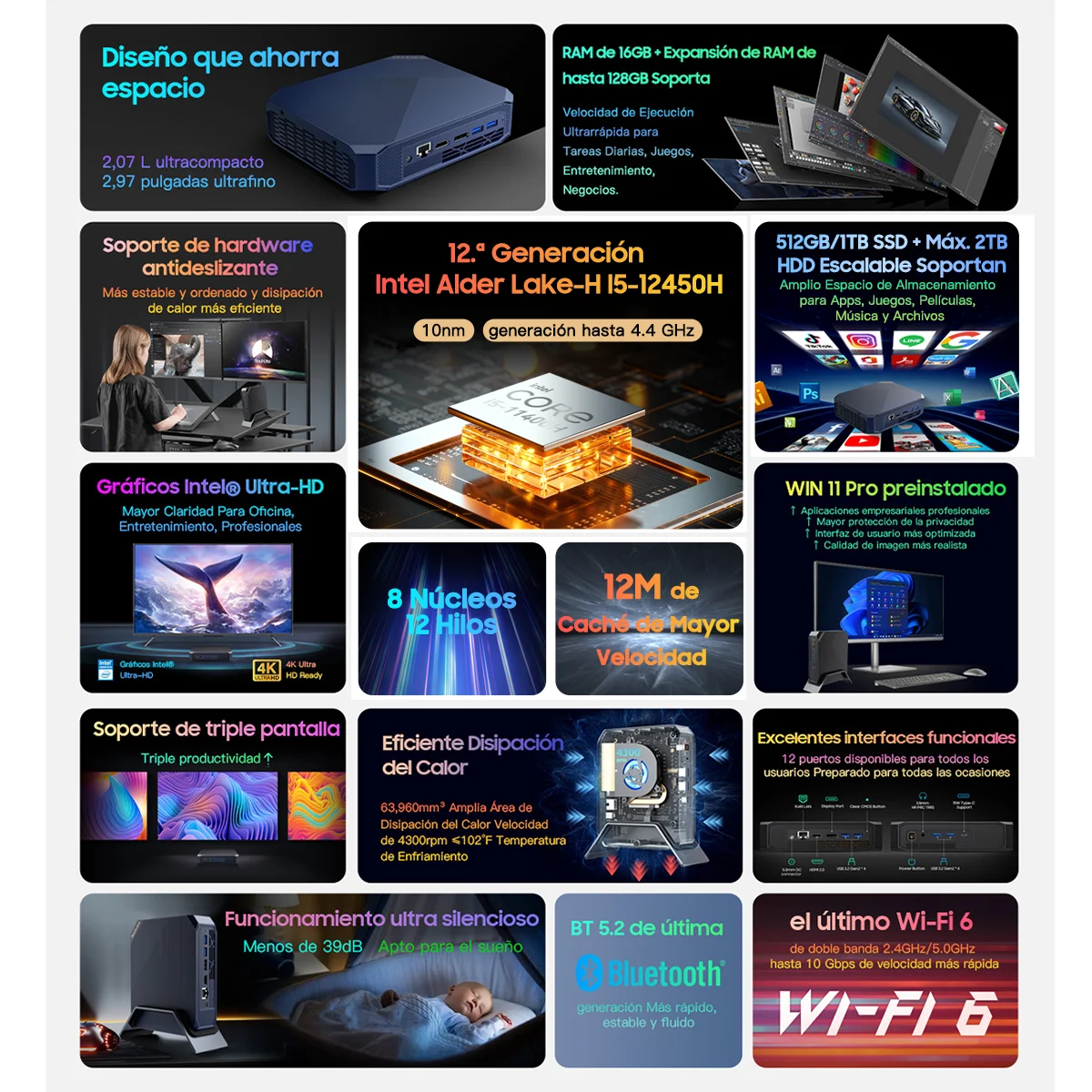 Comprar Blackview MP200 12.a generación Intel I5-12450H ventana 11 Mini PC hasta 4,5 GHz 16GB DDR4 512GB/1TB SSD WiFi 6 4K DH computadora de escritorio