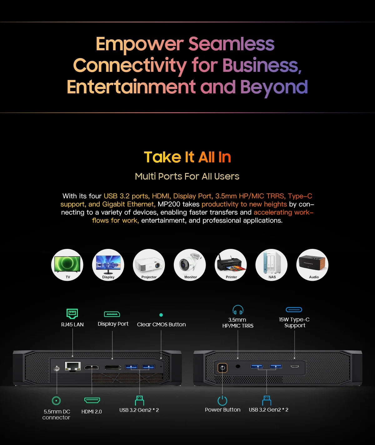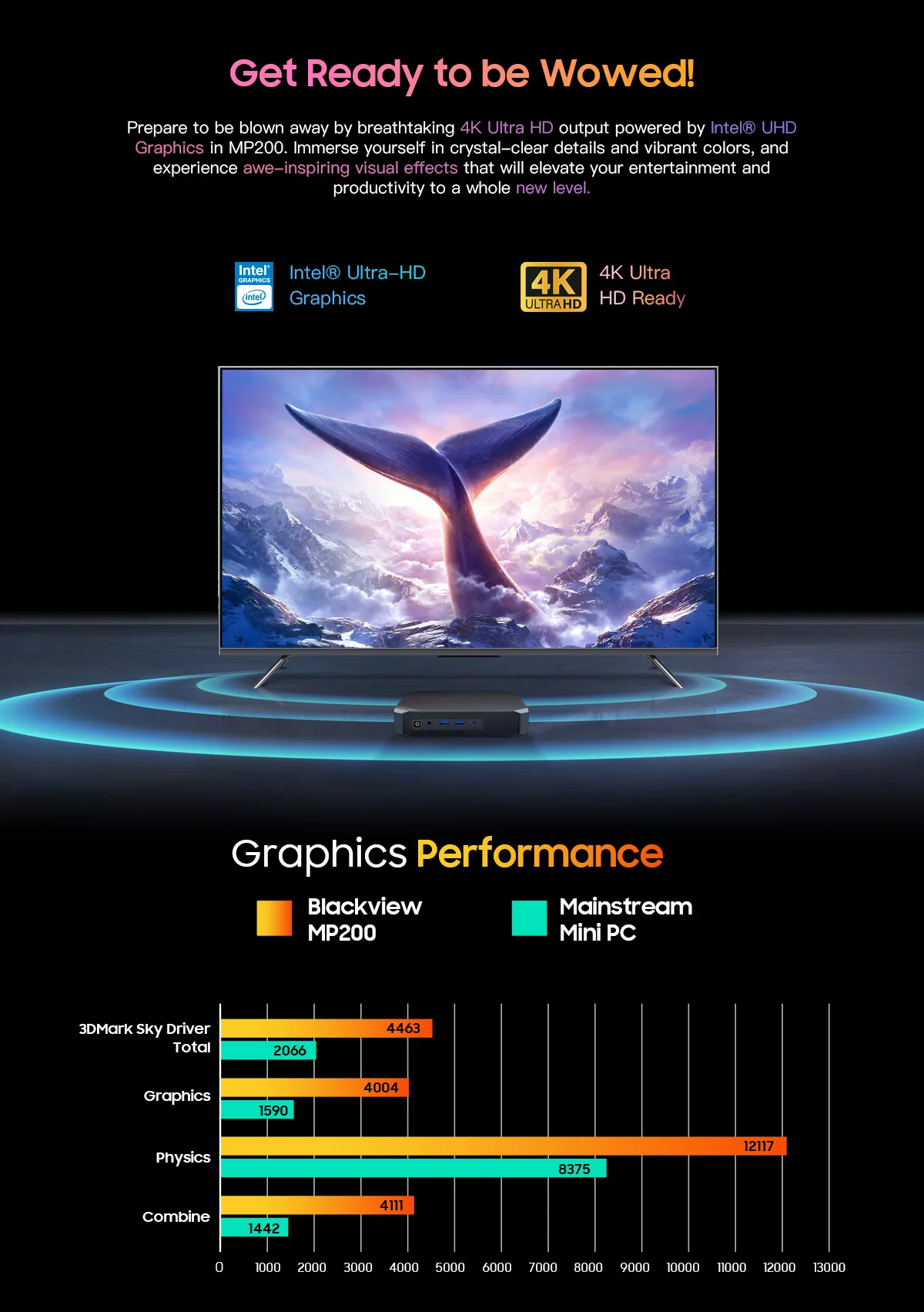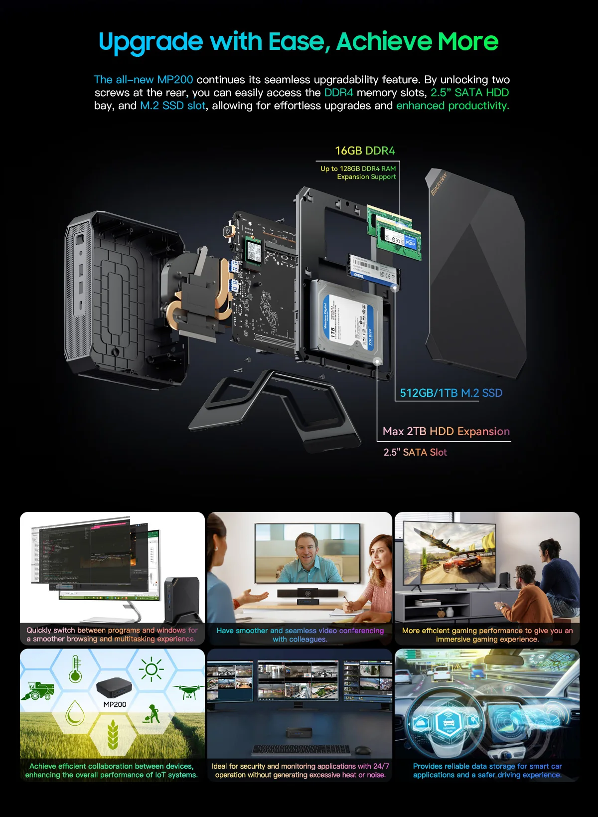 Comprar Blackview MP200 12.a generación Intel I5-12450H ventana 11 Mini PC hasta 4,5 GHz 16GB DDR4 512GB/1TB SSD WiFi 6 4K DH computadora de escritorio