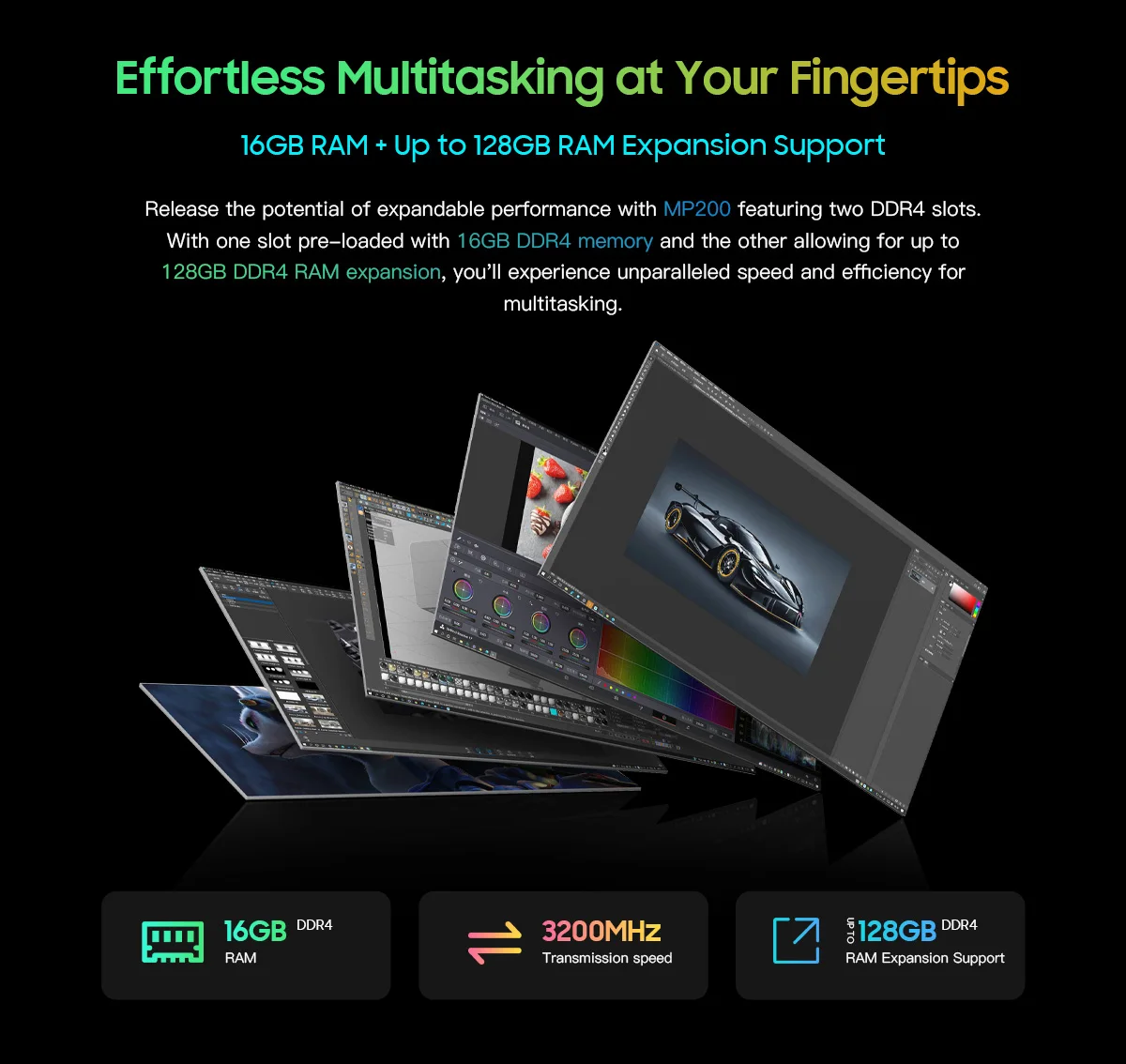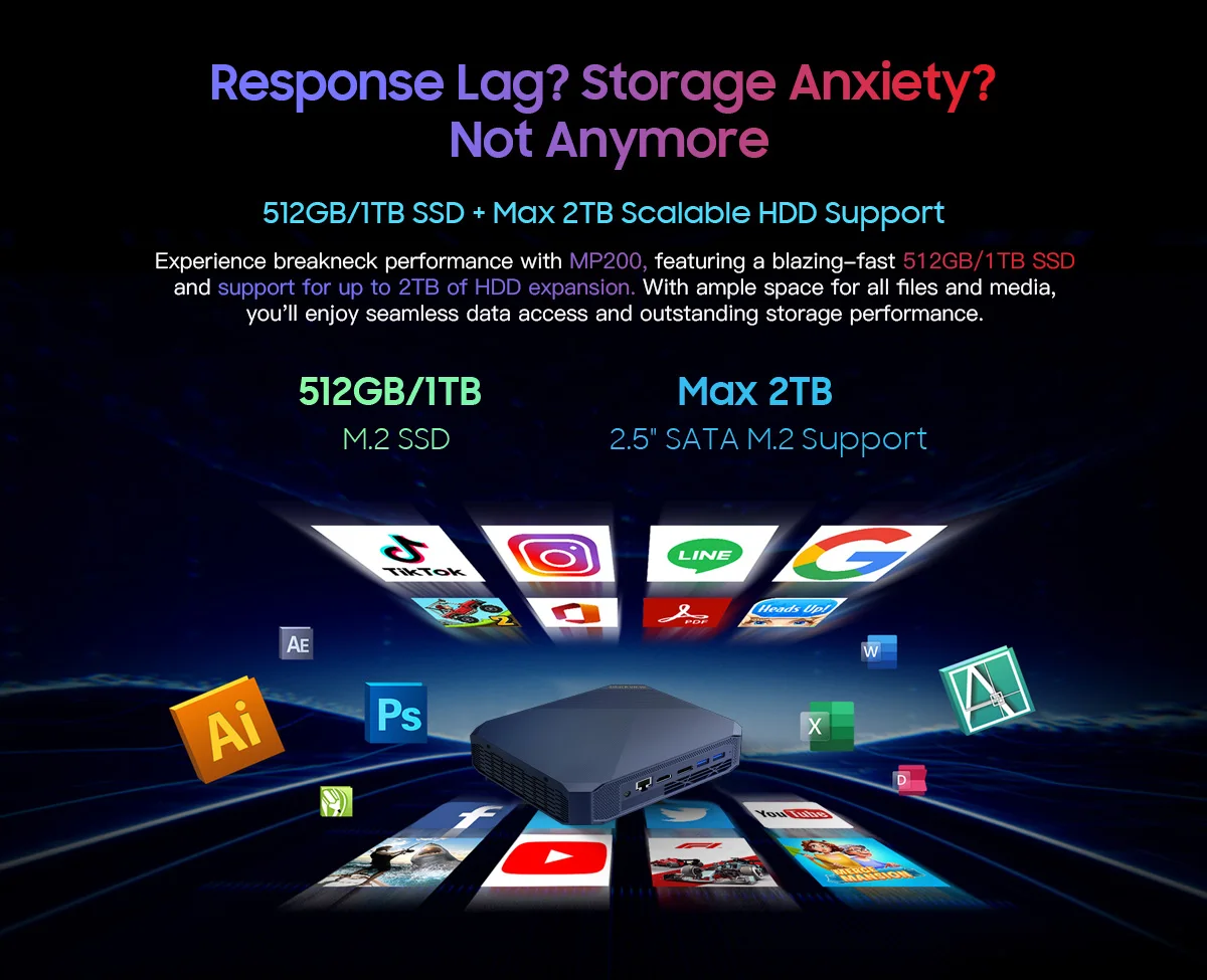 SSD:512GB/1TB M.2, Max 2TB 2,5 "HDD Expansión de almacenamiento