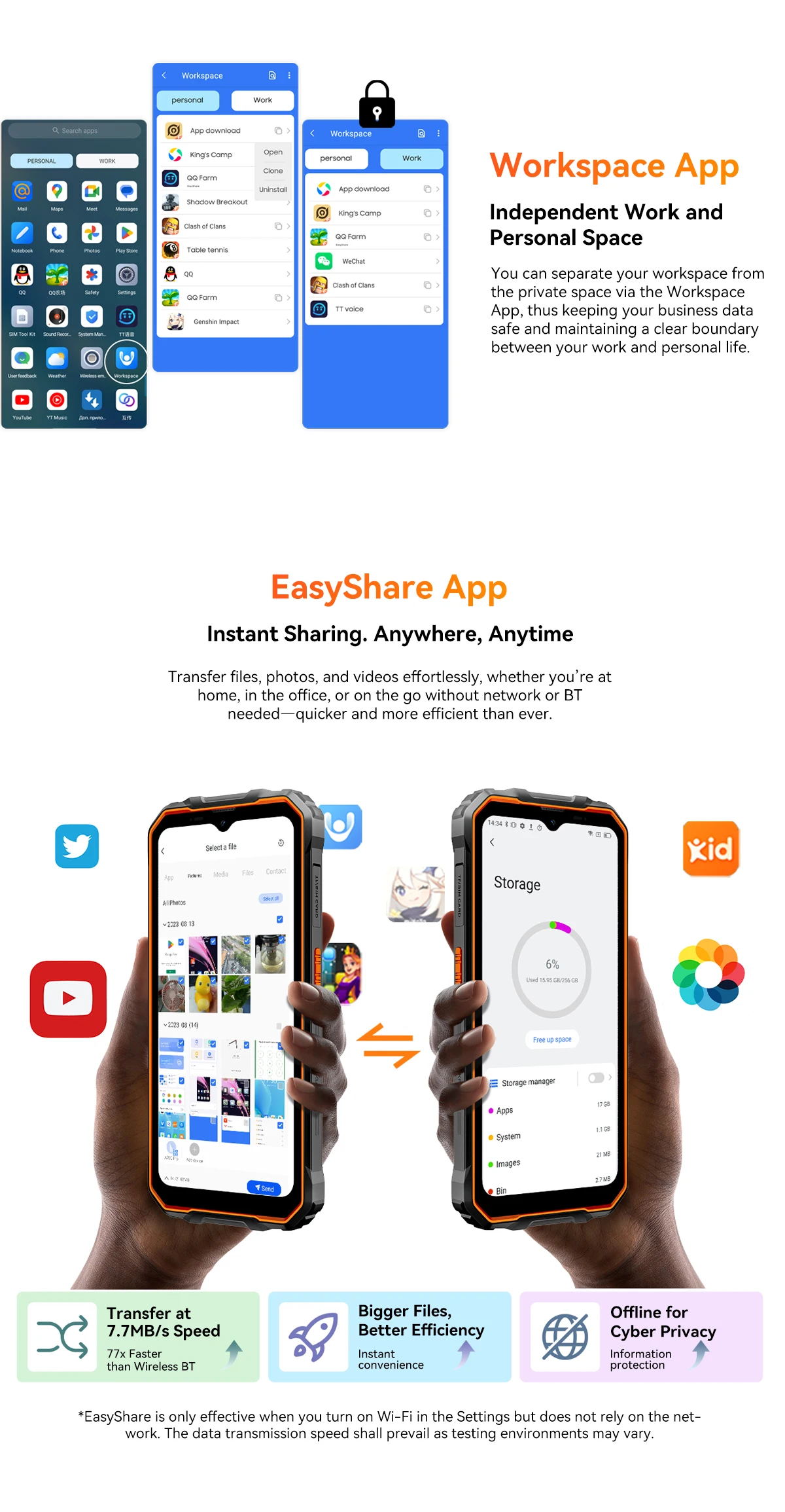 ¡El teléfono es excelente! ¡He estado soñando con uno como este durante mucho tiempo! El diseño es magnífico, pero no es muy ligero para un hombre promedio. La batería es increíble, todas las protecciones están en su lugar. Solo las cámaras no son muy buenas, pero no soy un blogger.