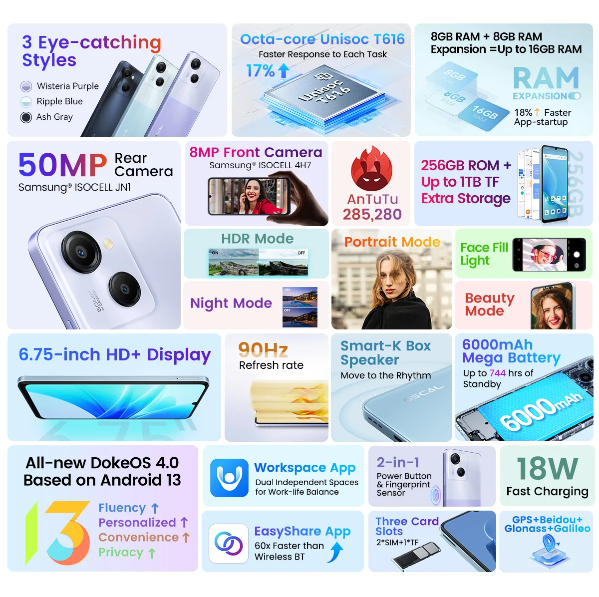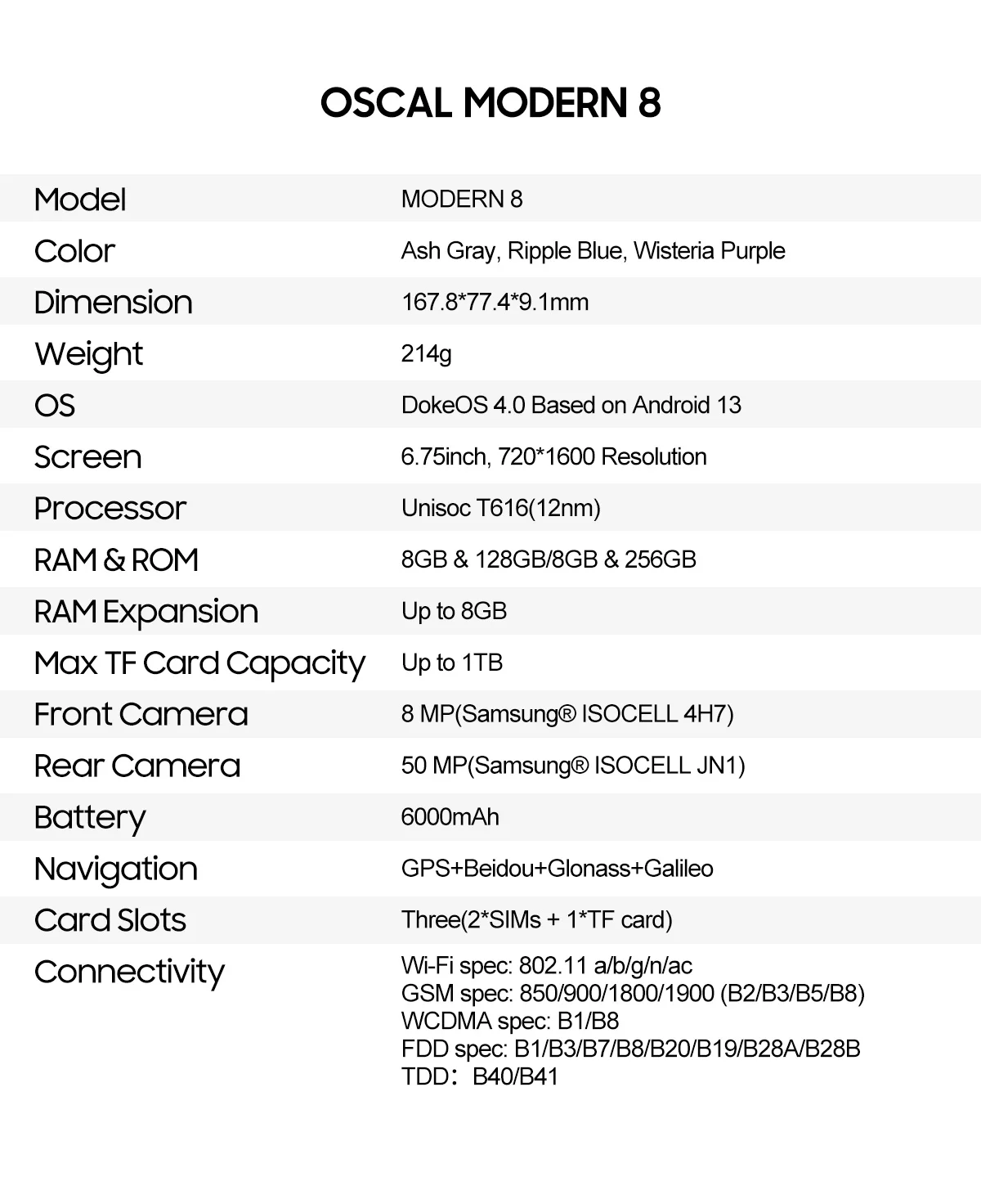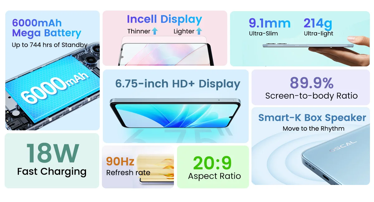 Comprar Blackview OSCAL MODERNO 8 Smartphone Pantalla de 6,75 pulgadas 128GB/256GB ROM Cámara de 50MP Batería de 6000mAh Teléfono móvil Android 13 4G