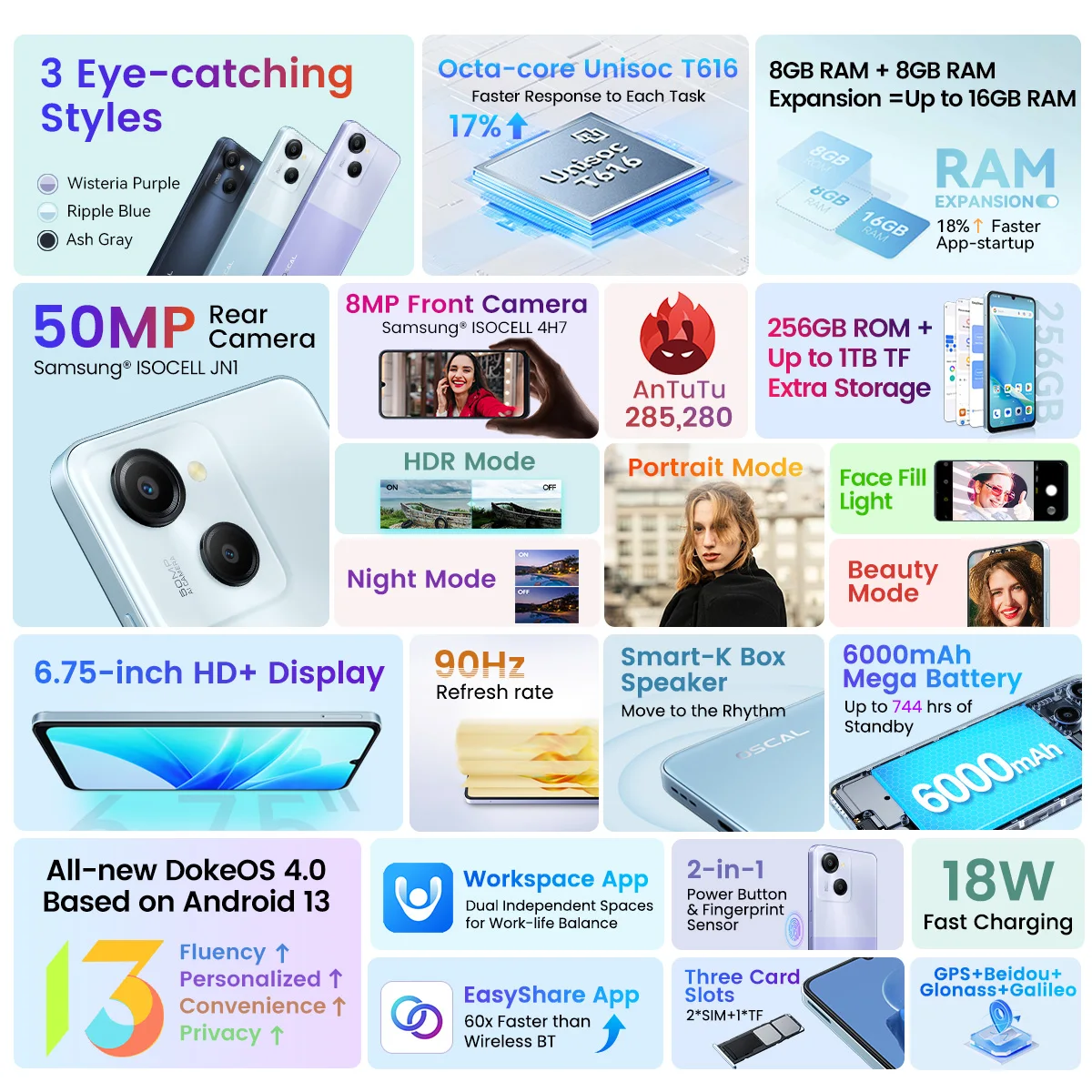 Comprar Blackview OSCAL MODERNO 8 Smartphone Pantalla de 6,75 pulgadas 128GB/256GB ROM Cámara de 50MP Batería de 6000mAh Teléfono móvil Android 13 4G