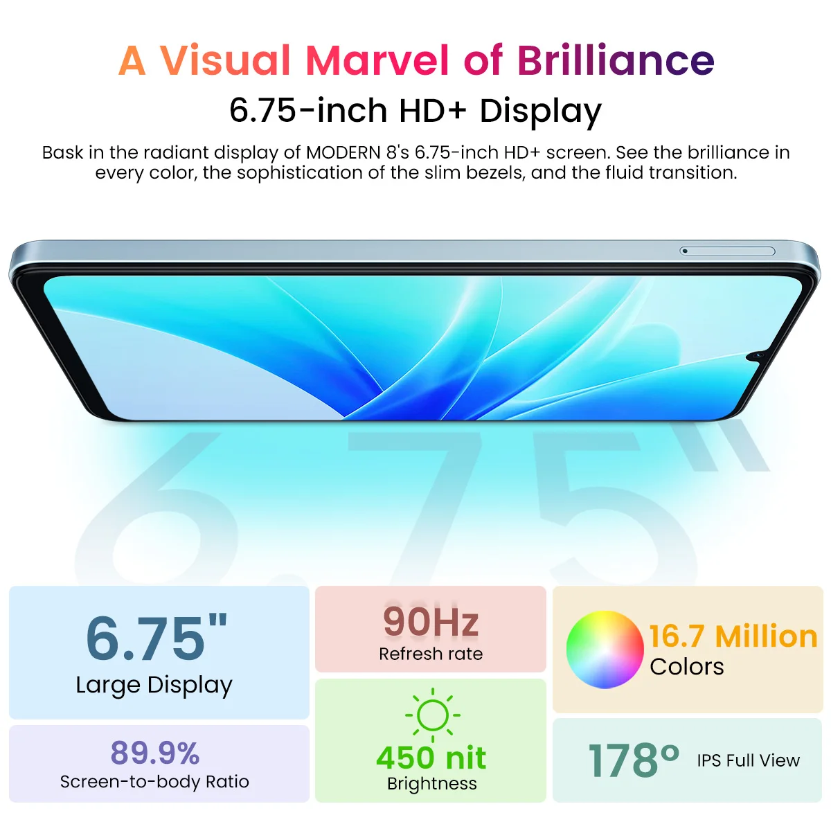 Pantalla:Pantalla HD de 6,75 pulgadas + IPS 720*1600 90Hz