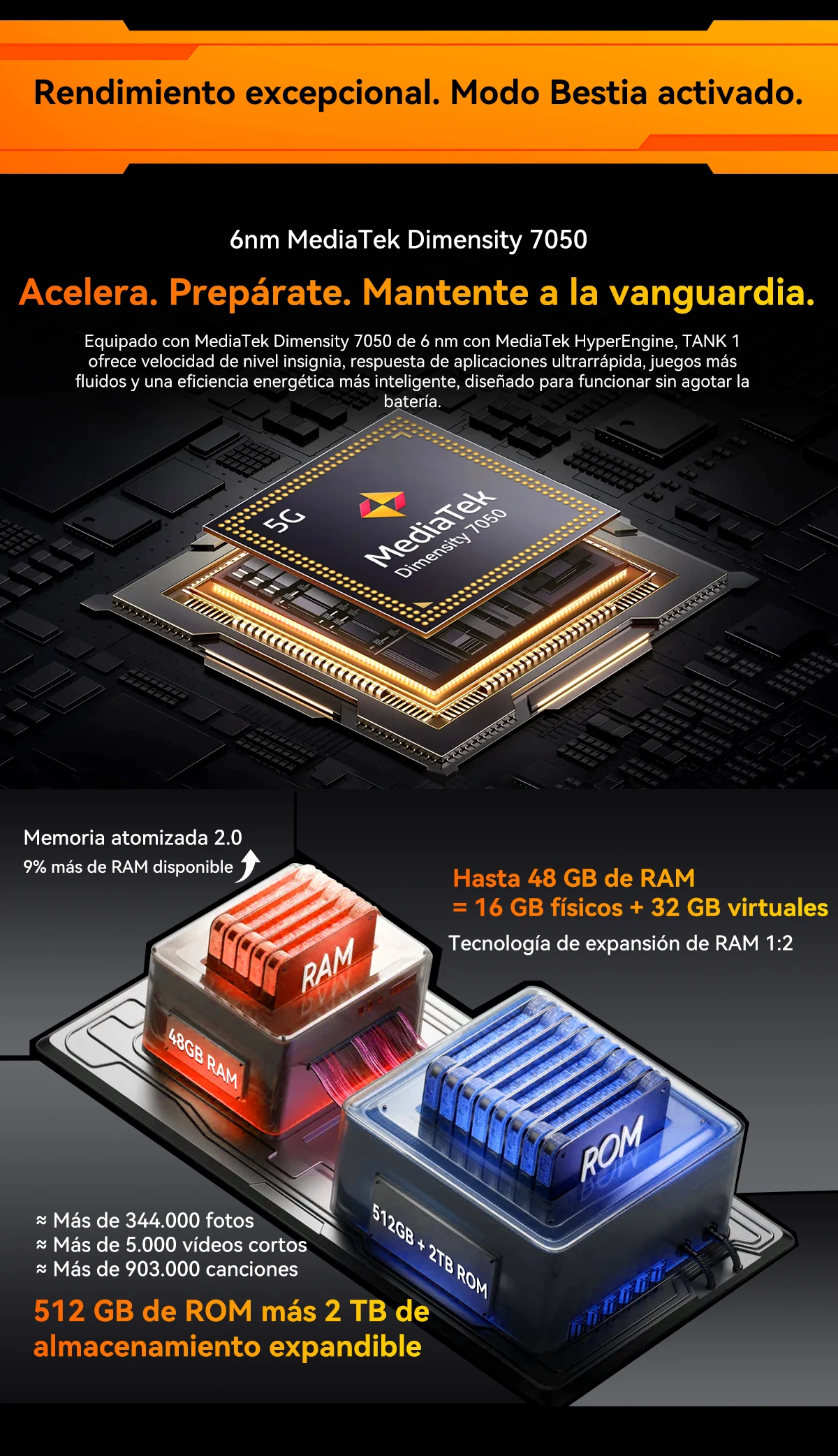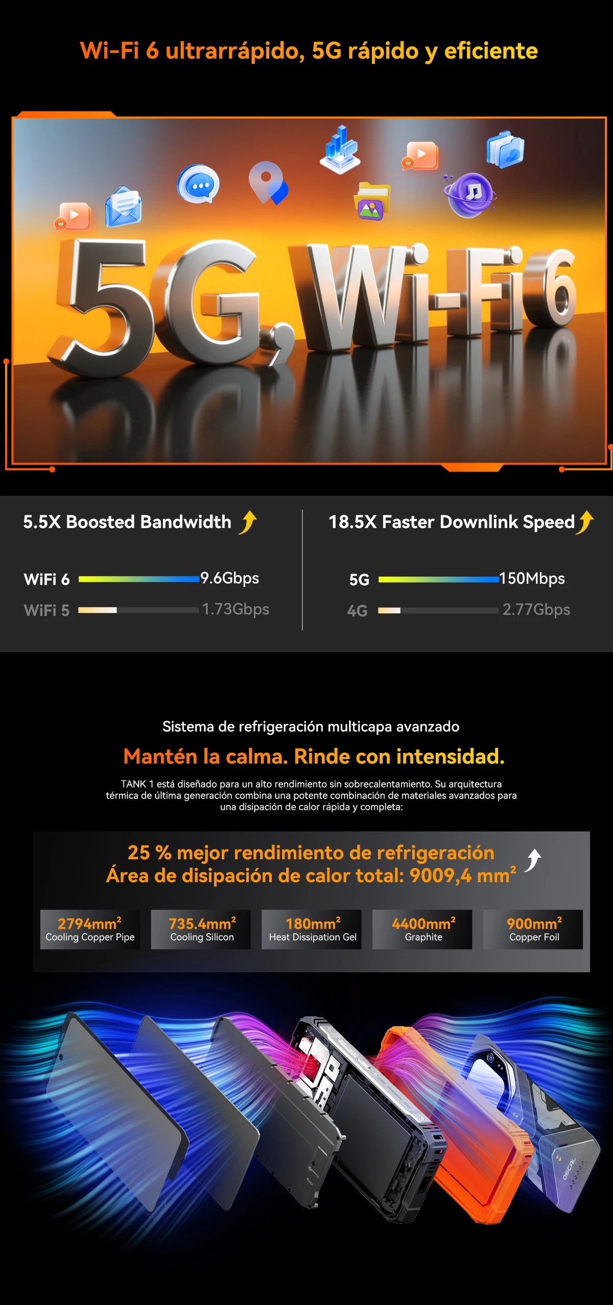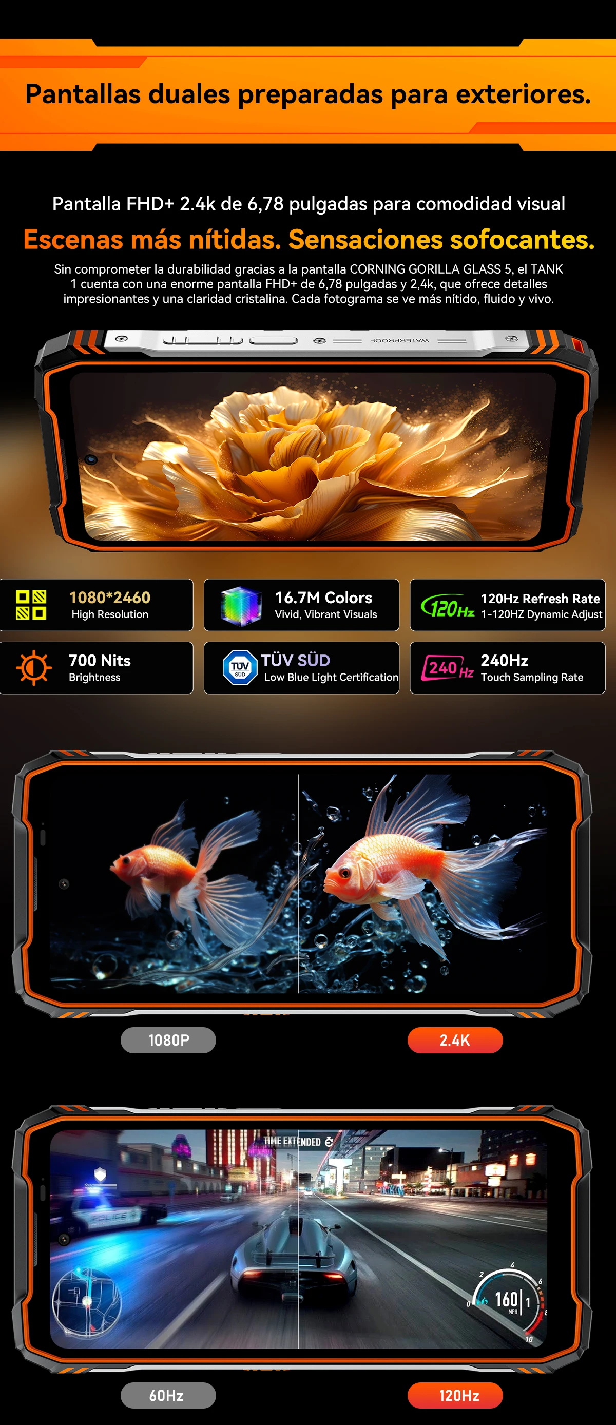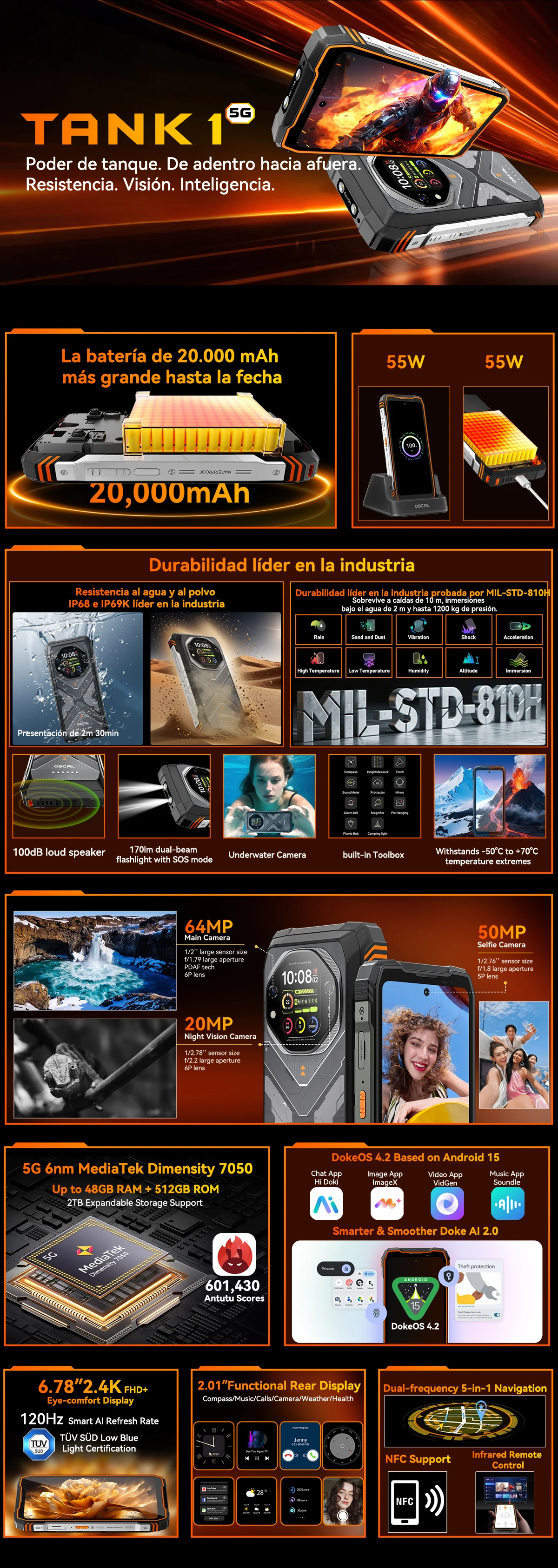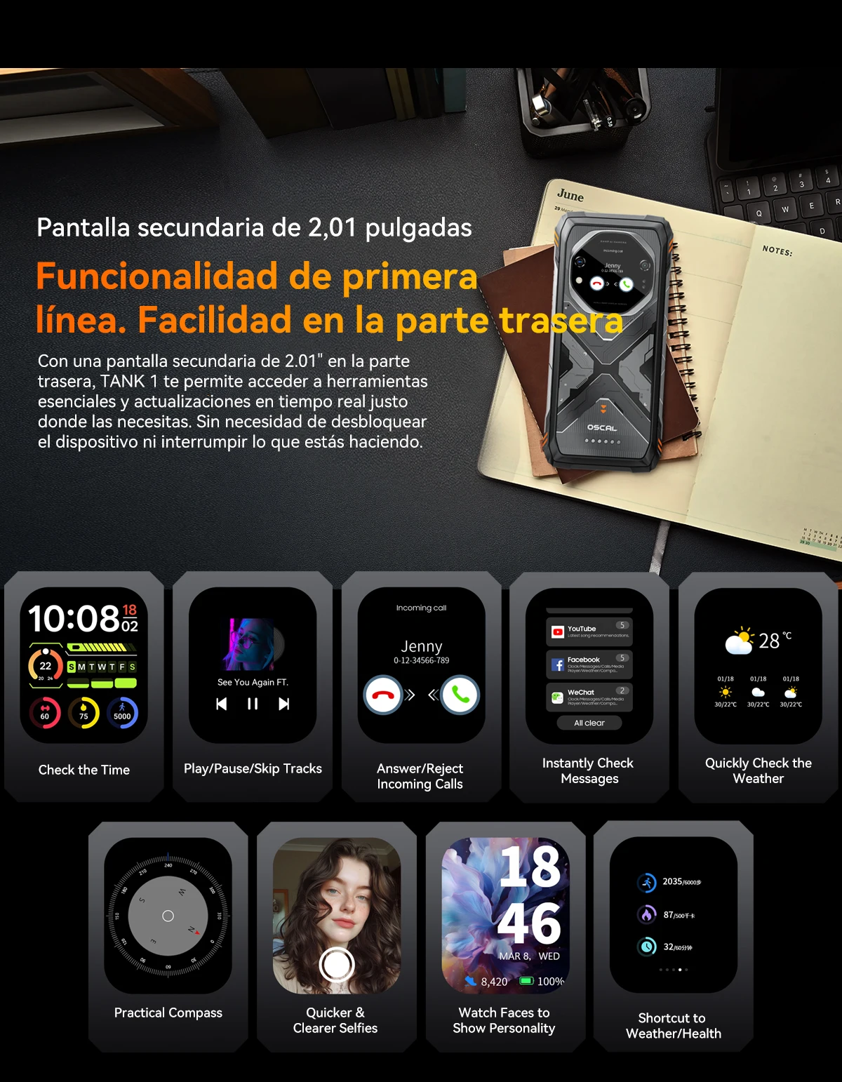 Comprar Blackview OSCAL TANK 1 Smartphone resistente 5G para exteriores, batería de 300 mAh, pantalla FHD+ de 6,78" y 120 Hz, 16 GB + 512 GB, cámara de 64 MP + 50 MP