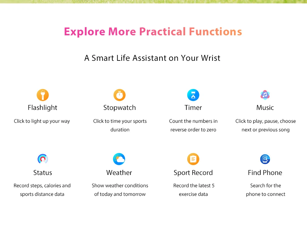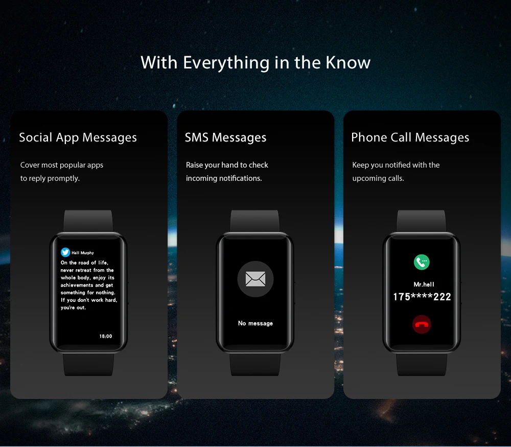 Q1.What phones is this watch compatible with ?A1.It is compatible with iOS 9.0 & higher, Android 6.0 & higher.Q2.Will this watch show push notifications? whatsapp,email, facebook.A2.Yes. Support WhatsApp, Facebook, Email, Skype, LinkedIn, Instagram, Twitter, Viber, line and so no. You can read the message content on the screen.