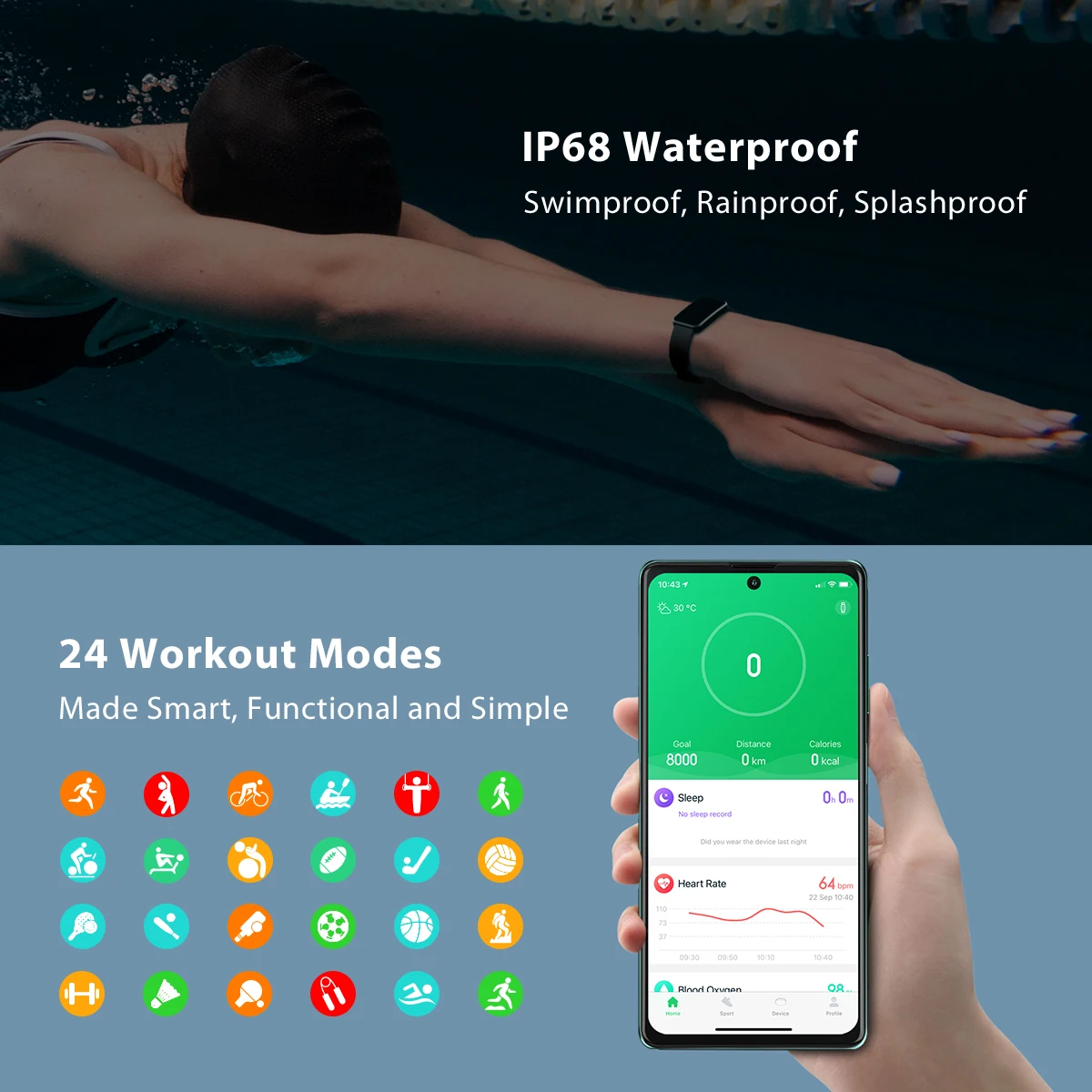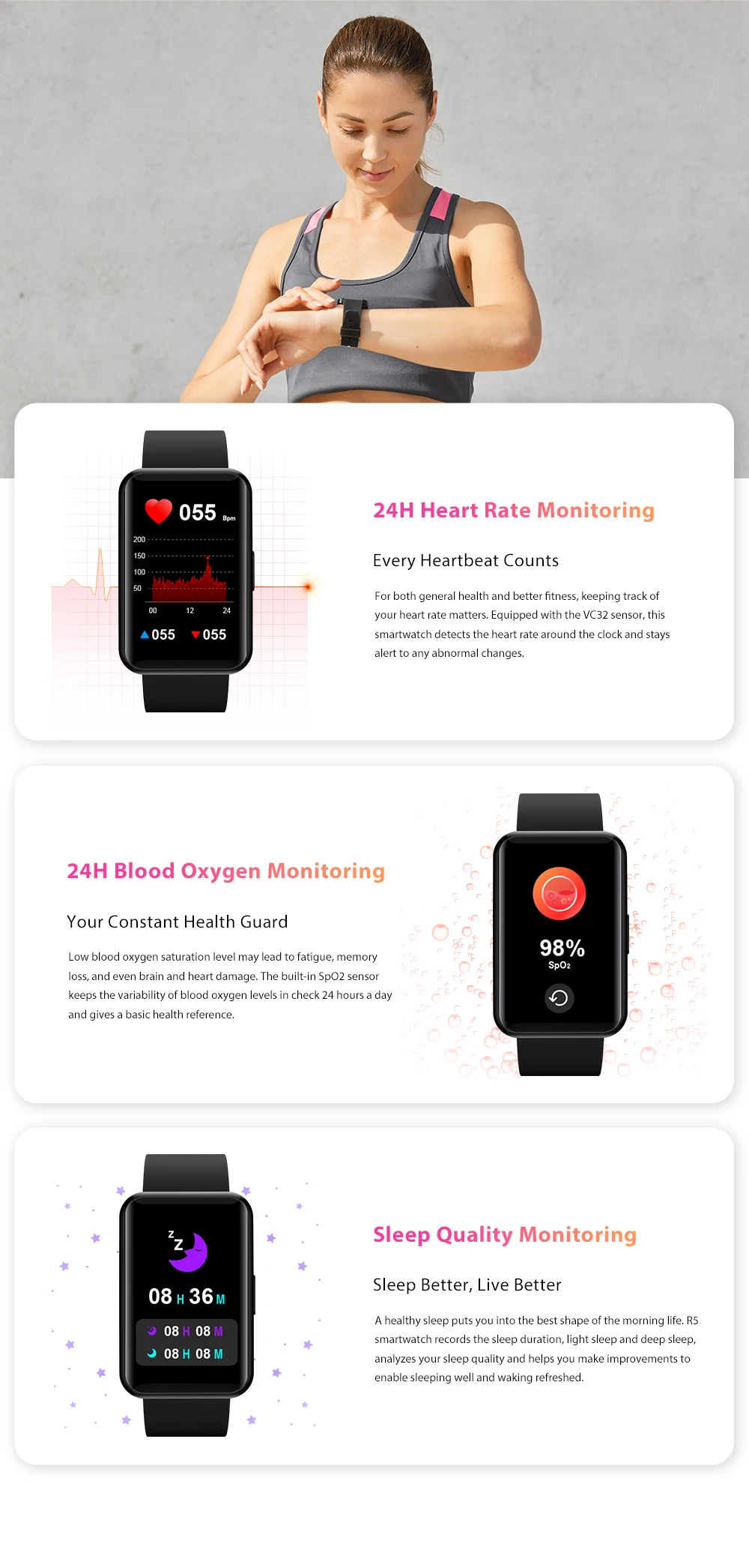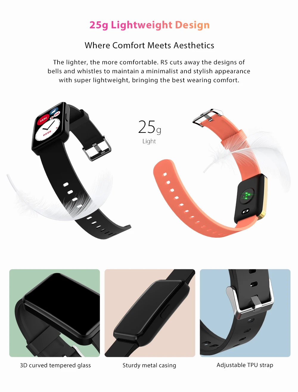 Comprar Blackview-reloj inteligente R5, accesorio de pulsera resistente al agua IP68 con Bluetooth, control del ritmo cardíaco y del sueño, control del oxígeno en sangre, compatible con Android e IOS