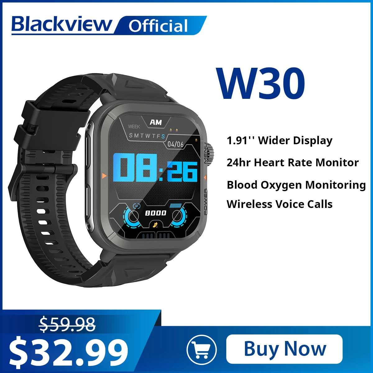 Comprar Blackview-reloj inteligente W30 para hombre y mujer, dispositivo resistente al agua, con seguimiento de salud y Fitness, llamadas por Bluetooth, para ISO y Android, nueva versión