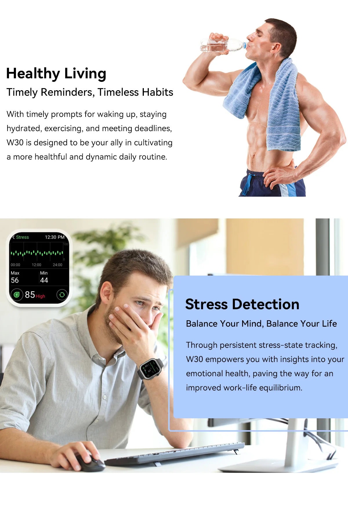 Blackview-reloj inteligente W30 para hombre y mujer, dispositivo resistente al agua, con seguimiento de salud y Fitness, llamadas por Bluetooth, para ISO y Android, nueva versión