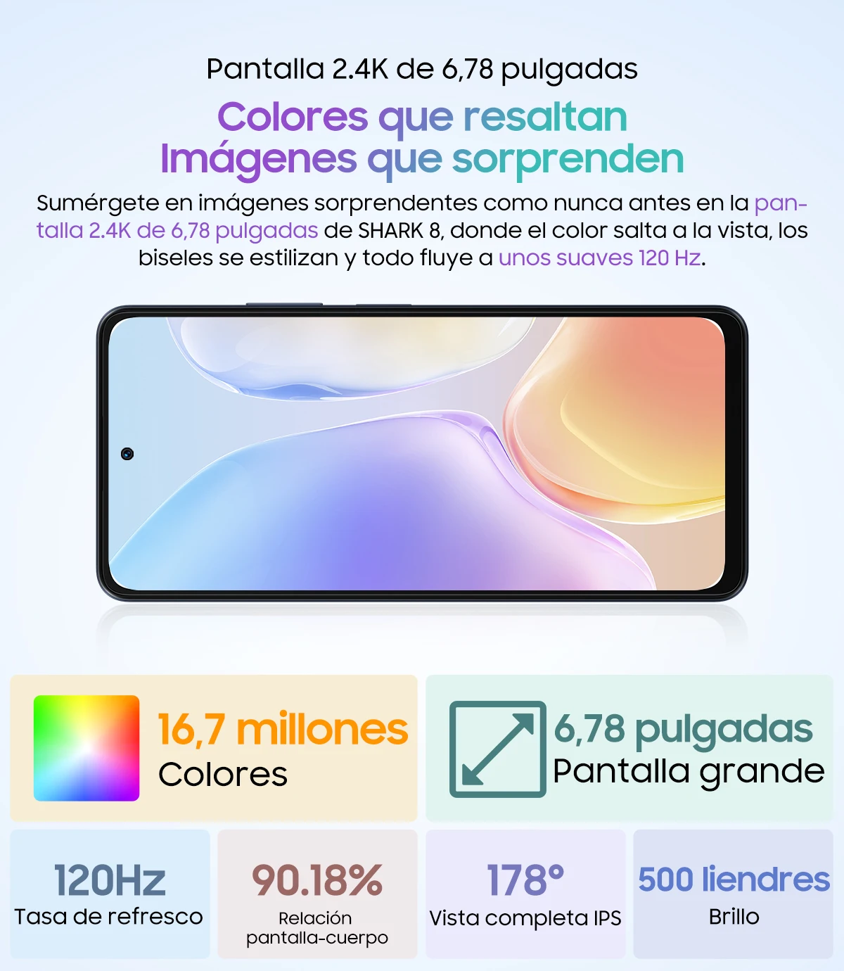 Pantalla:6,78"1080*2460 FHD + 120Hz Actualizar Dislpay