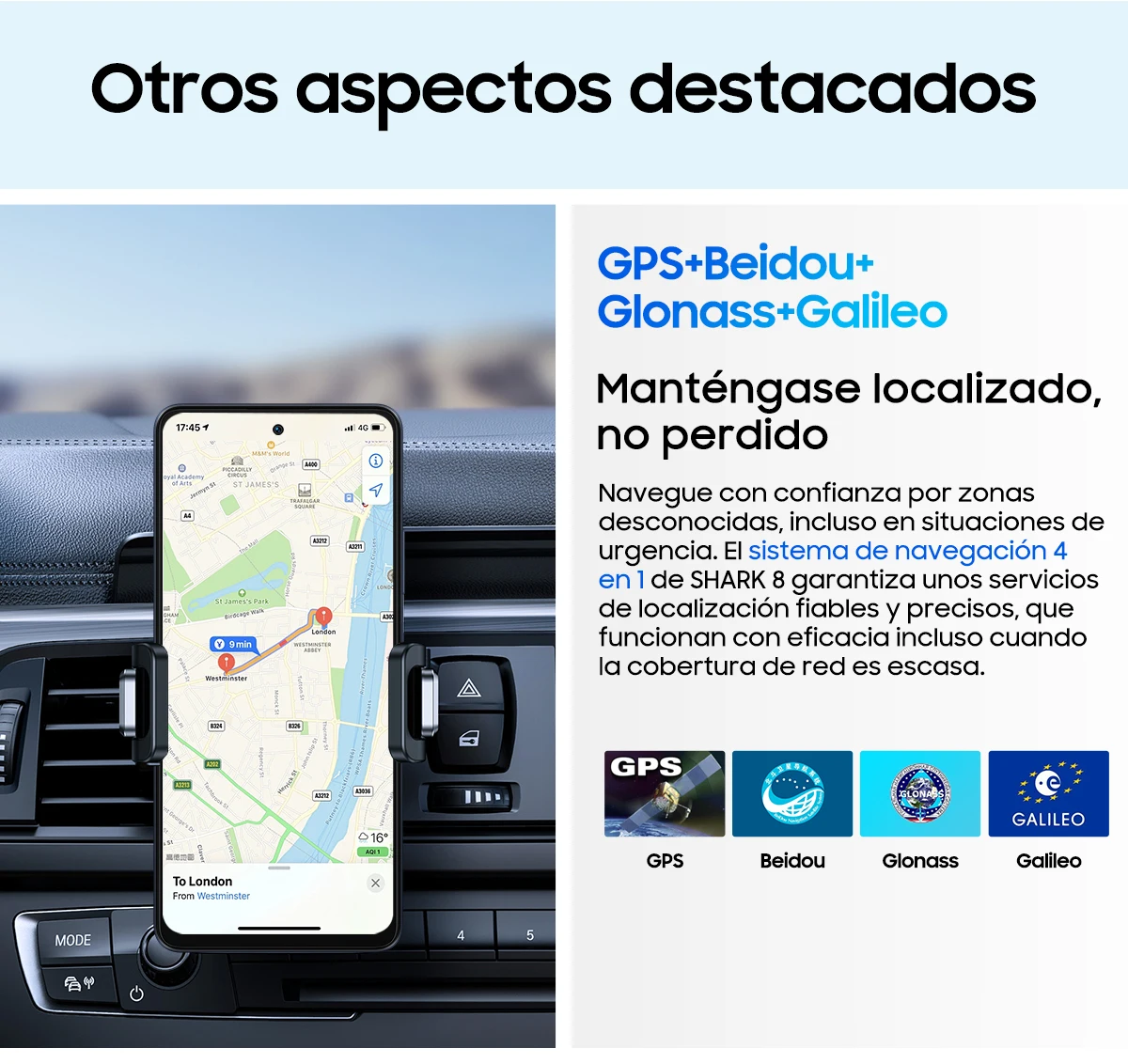 Soporte de navegación:GPS, Glonass, Beidou, Galileo