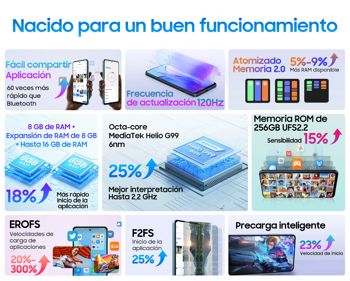 CPU:MTK Helio G99, ocho núcleos, 2 * A76 2,2 GHz + 6 * A55 2,0 GHz