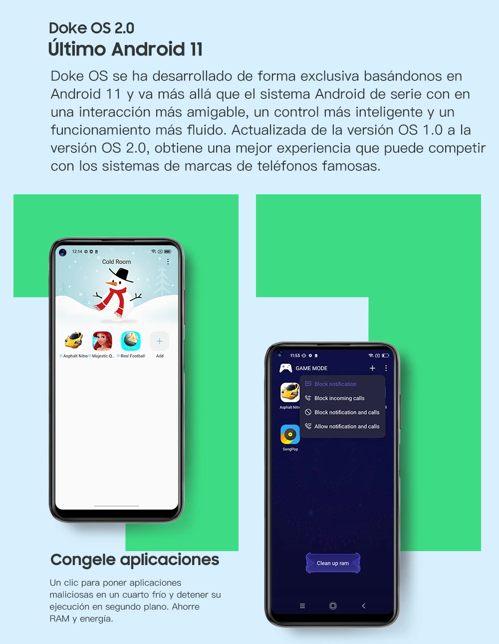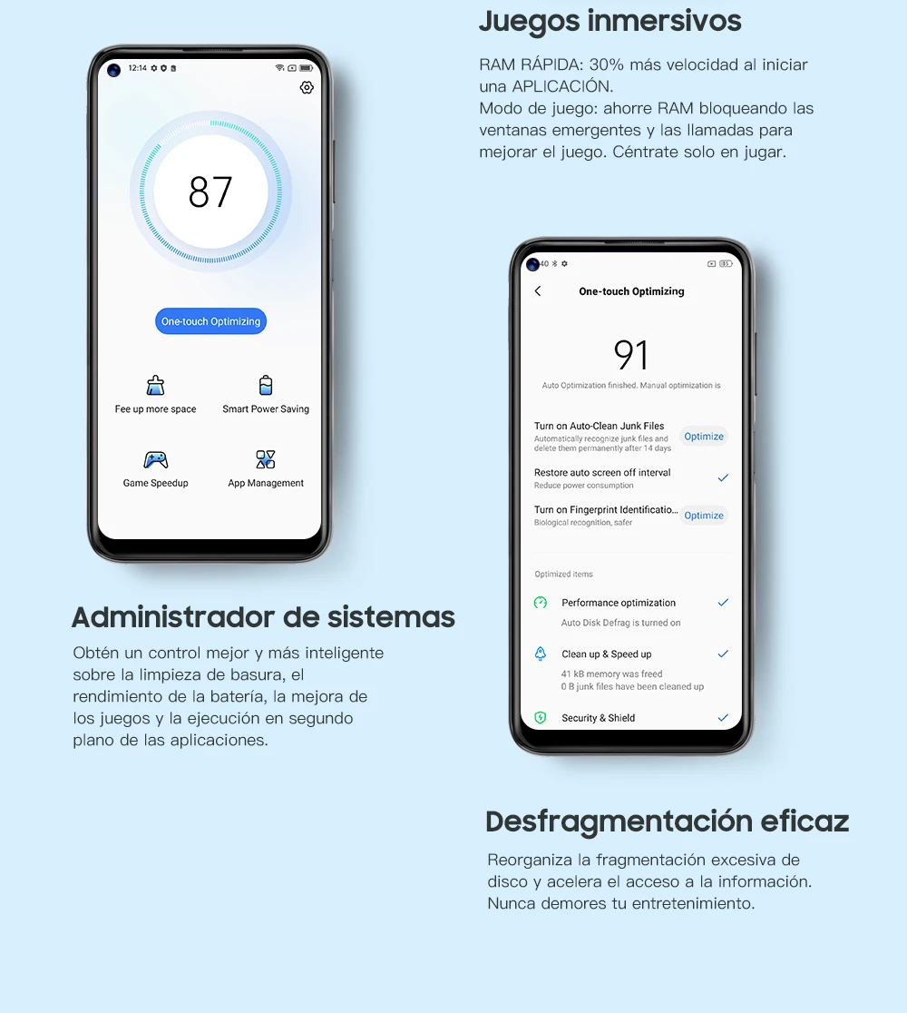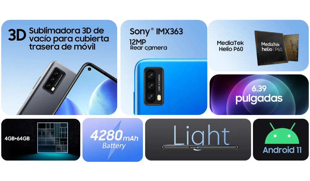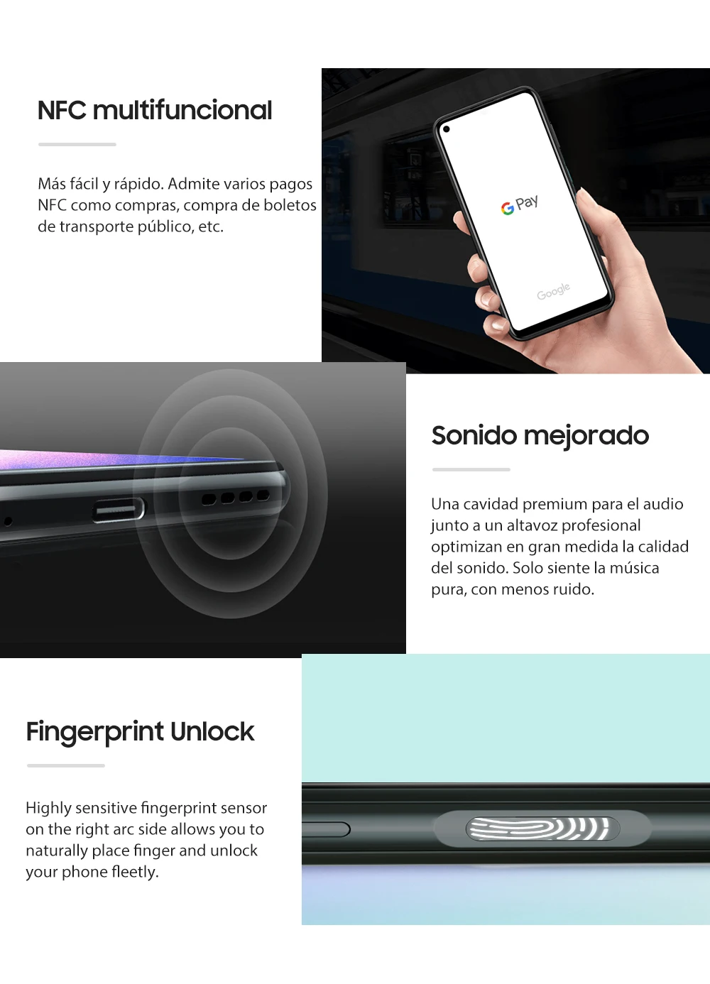 Función: huella digital, NFC, FM, brújula, giroscopio