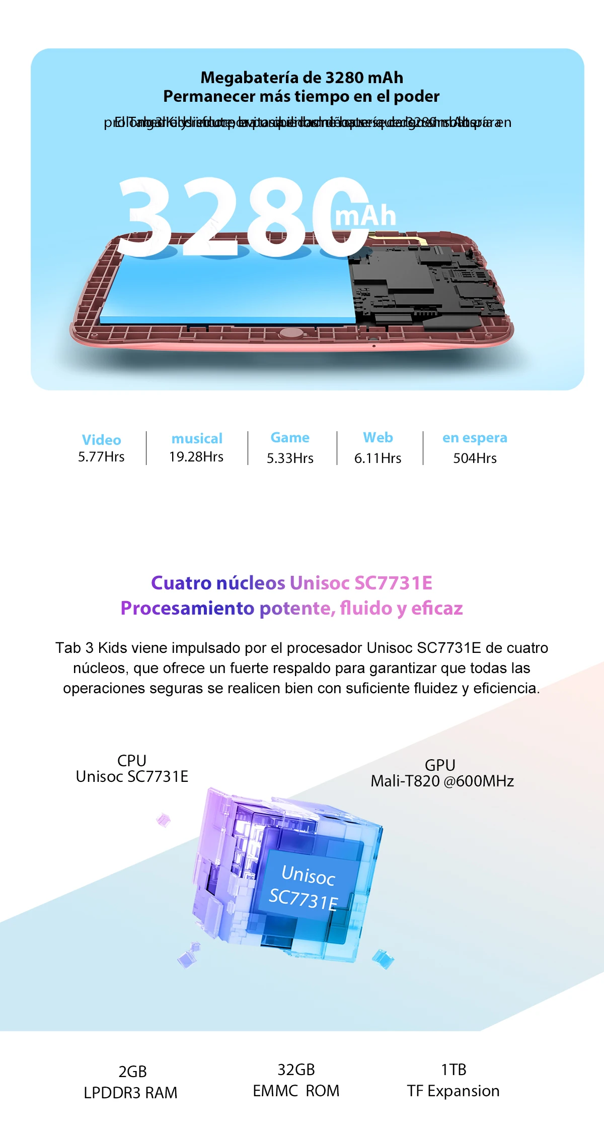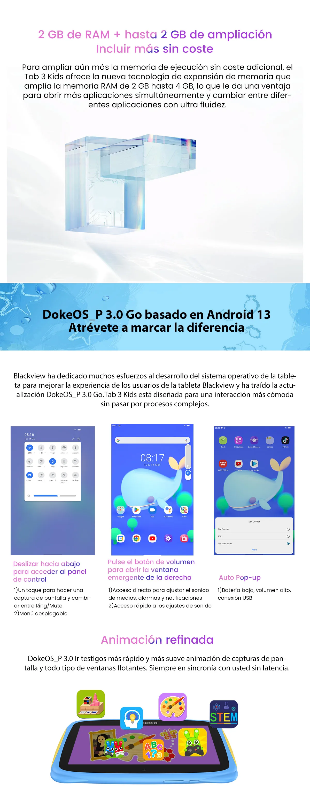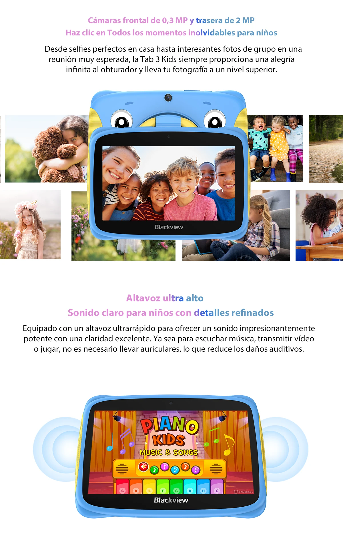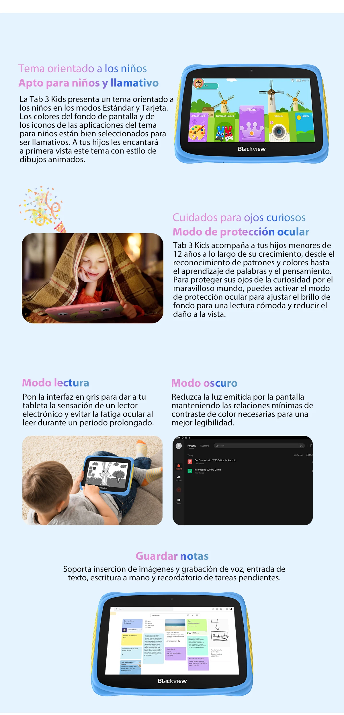 Comprar Blackview Tab 3 niños pantalla HD de 7 pulgadas tableta para niños 2GB RAM 32GB ROM, Android 13 Tablet PC Quad Core Wifi para estudio educación