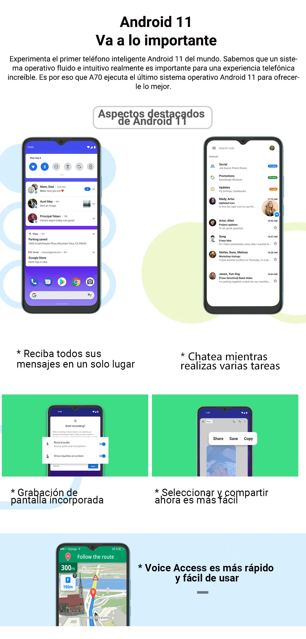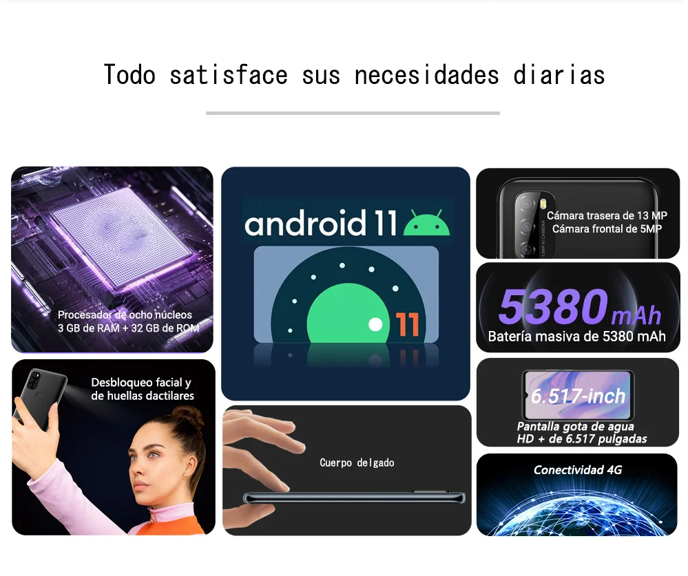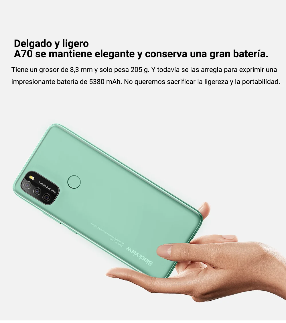 Comprar Blackview-teléfono inteligente A70 con Android 11, pantalla de 6,52 pulgadas, Octa Core, 3GB de RAM + 32GB de ROM, 5380mAh, cámara trasera de 13MP, 4G