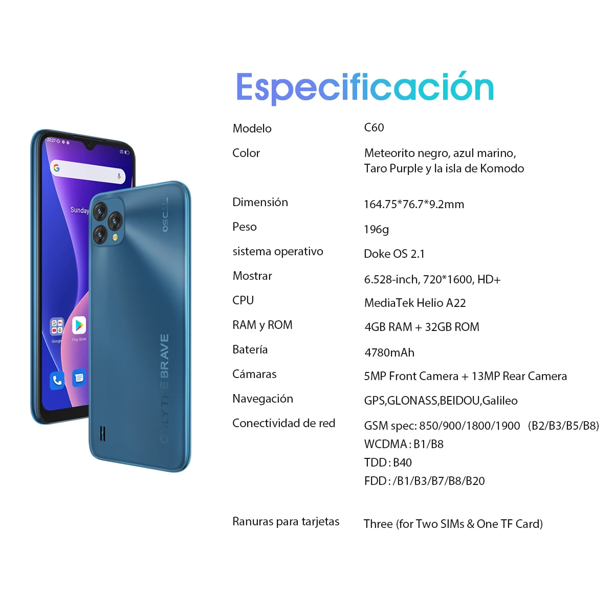 Comprar BLACKVIEW-teléfono móvil Oscal C60 de 2022 pulgadas, 4GB + 32GB, 6.528 mAh, cámara de 13MP + 5MP, 11 Android, con 3 ranuras para tarjetas, novedad de 4780