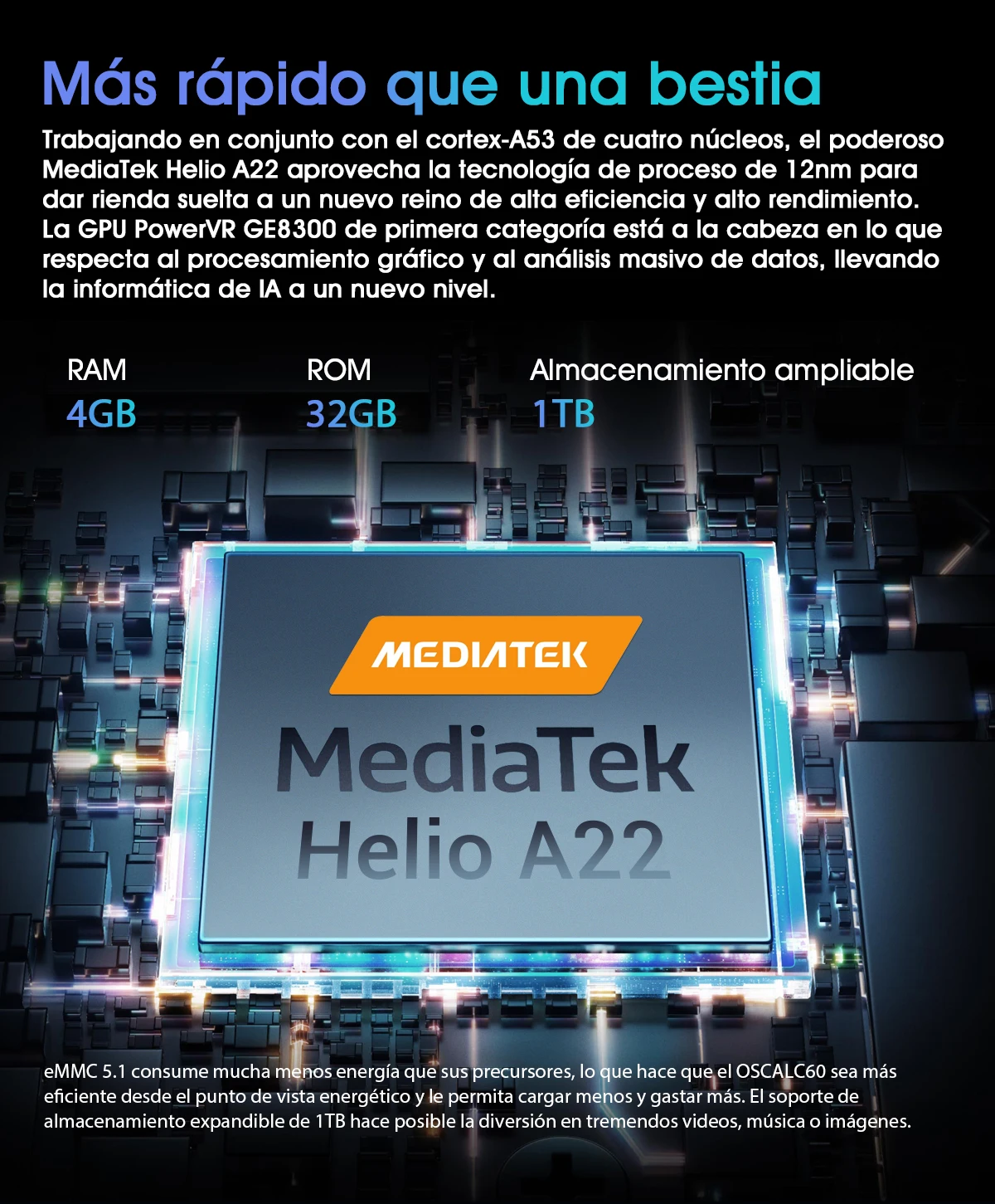 CPU -----------Helio A22, cuatro núcleos