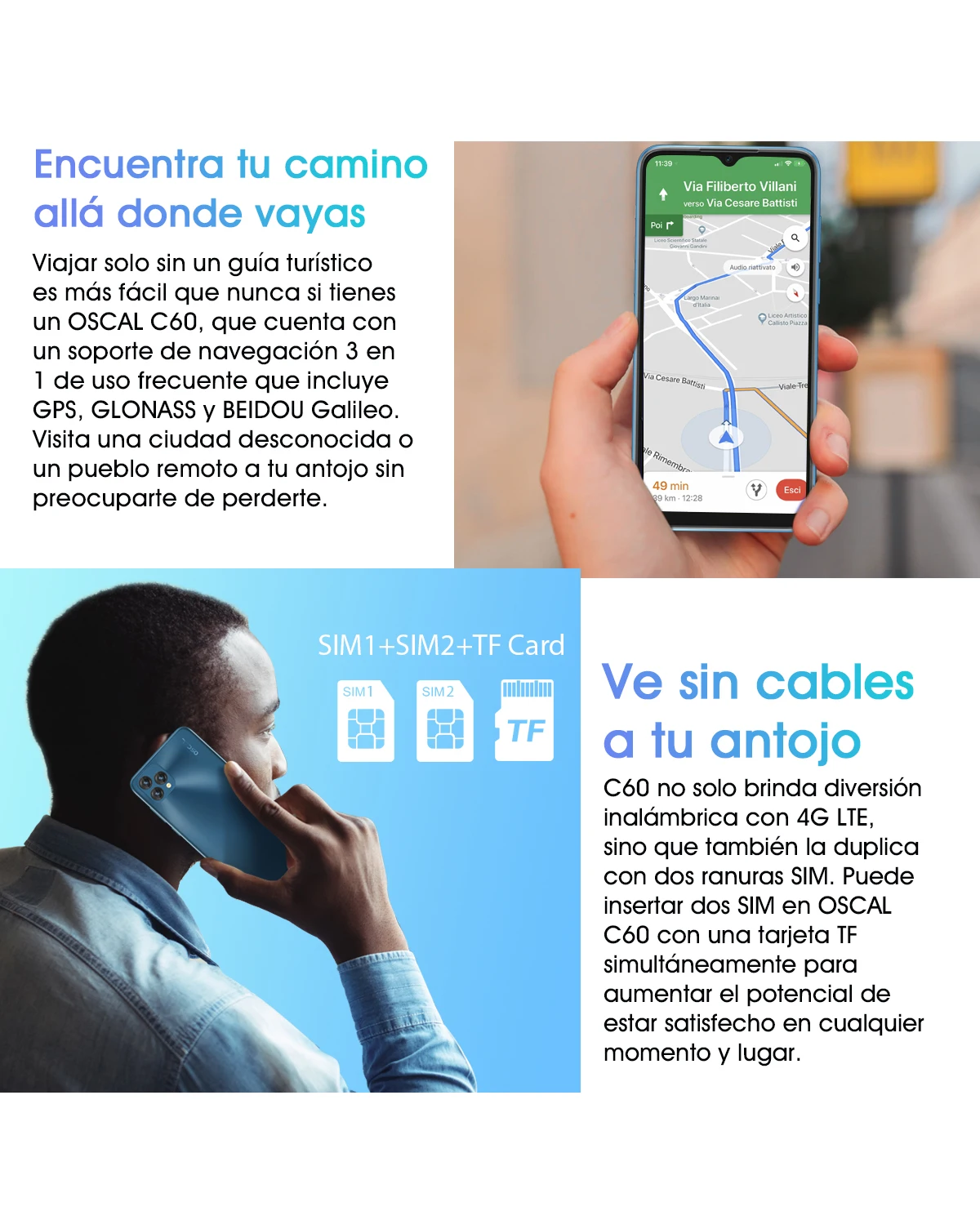3G: WCDMA:B1/B8Especificación LTE: TDD:B40 FDD:/B1/B3/B7/B8/B20Si no sabe si nuestro teléfono se puede utilizar en su país, haga clic aquí: