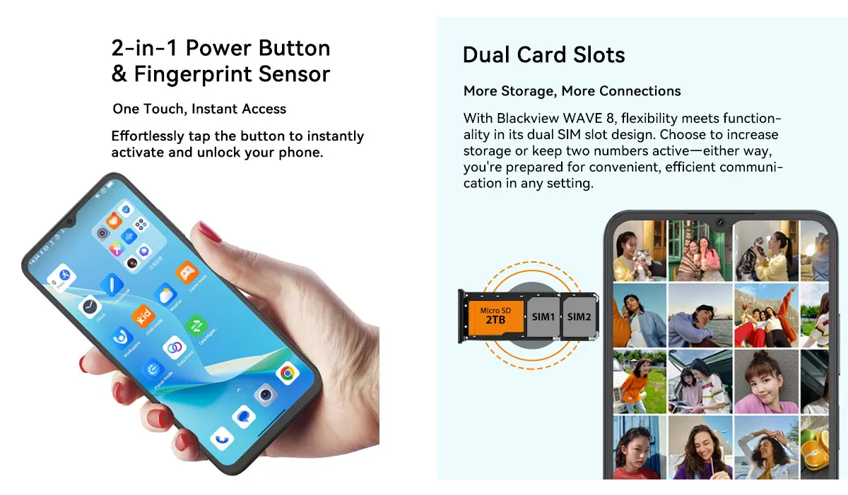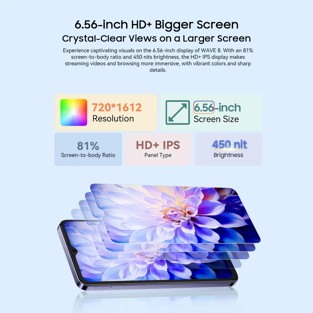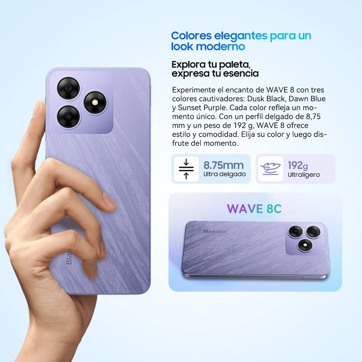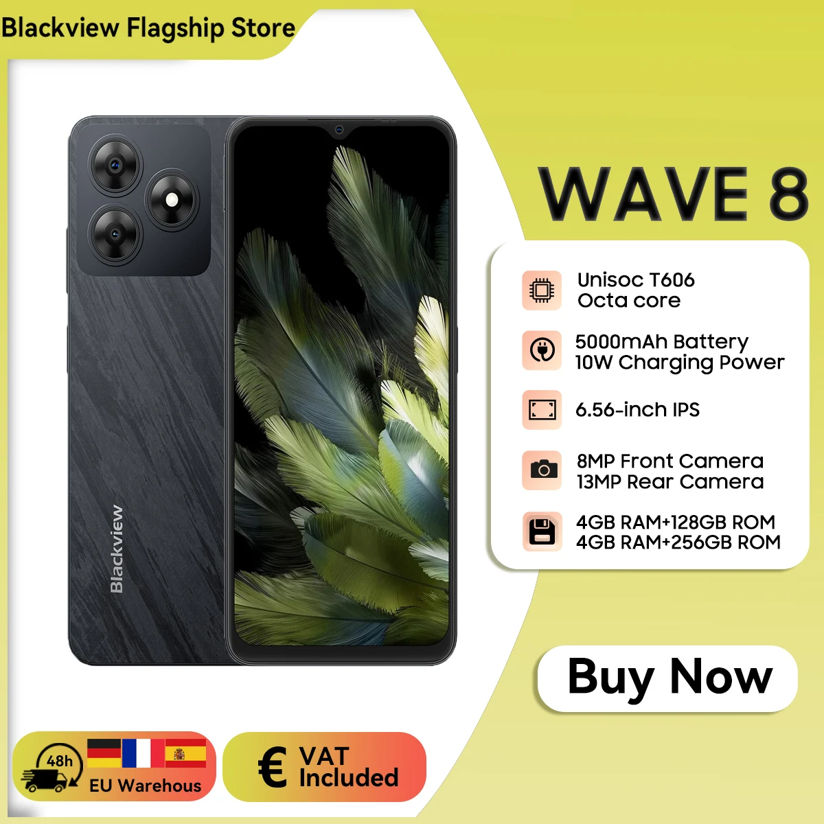 Comprar Blackview Wave 8 Smartphone 6.56'' 4GB+128GB/256GB Unisoc T606 Octa Core 5000mAh Batería 13MP Cámara 4G Android 14 Teléfono Móvil