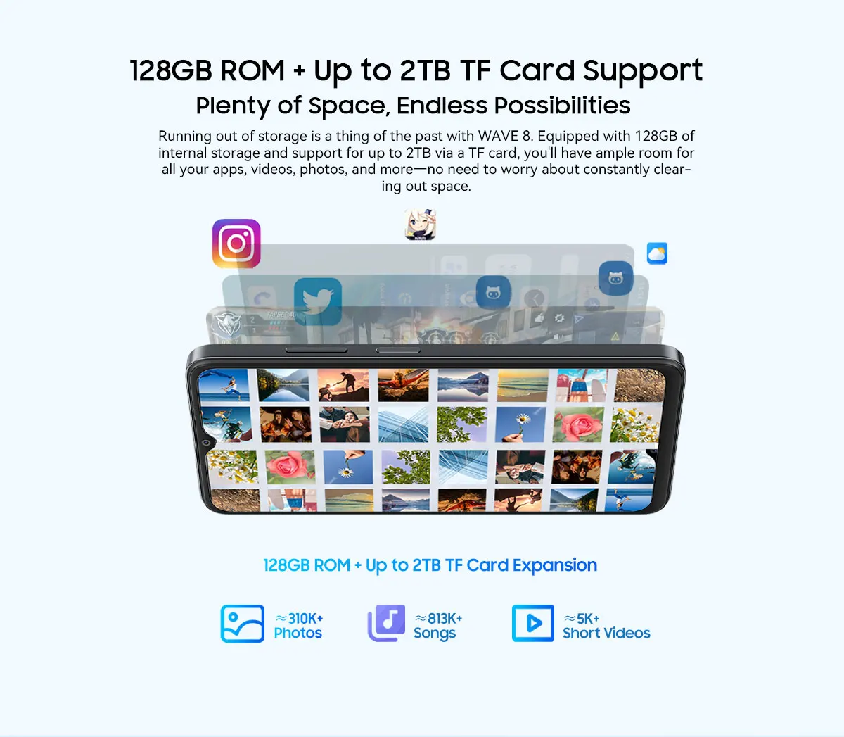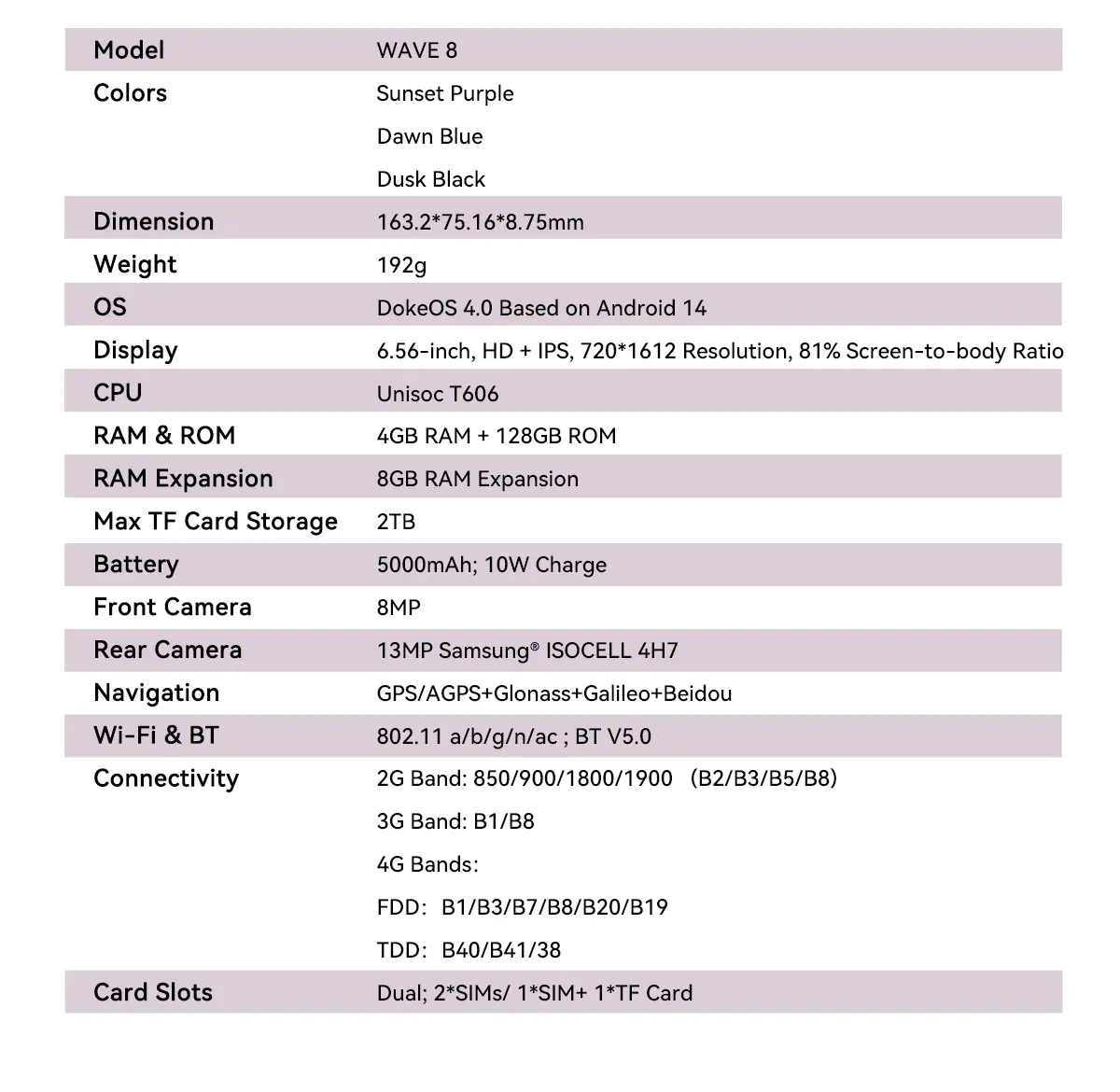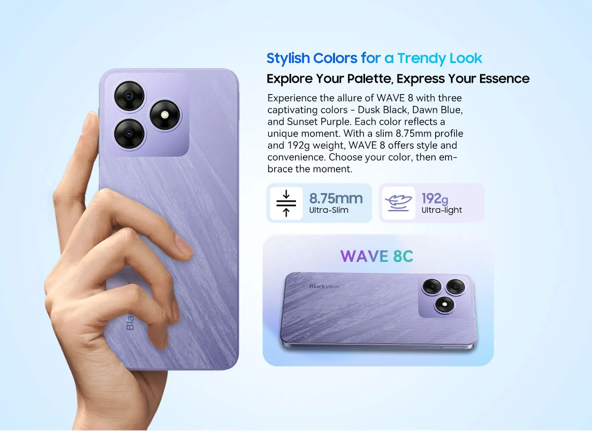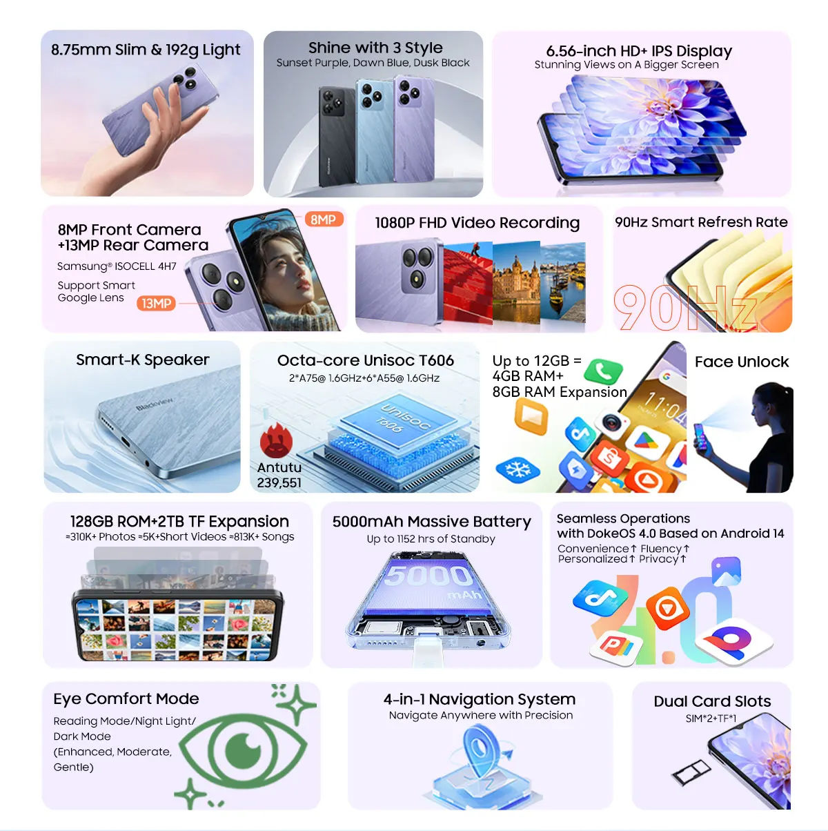 Comprar Blackview Wave 8 Smartphone 6.56'' 4GB+128GB/256GB Unisoc T606 Octa Core 5000mAh Batería 13MP Cámara 4G Android 14 Teléfono Móvil
