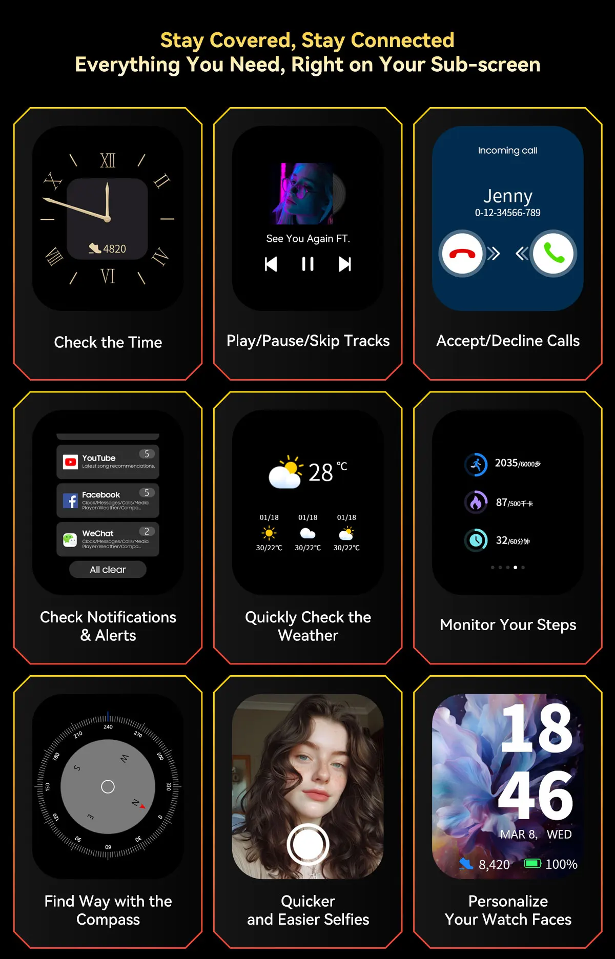 Pantalla:6,78 pulgadas 2.4K FHD+IPS, resolución 1080*2460, corning® Tarifa de actualización Gorilla" Glass 5,120 Hz, pantalla secundaria: 2,01 pulgadas, resolución 240*296