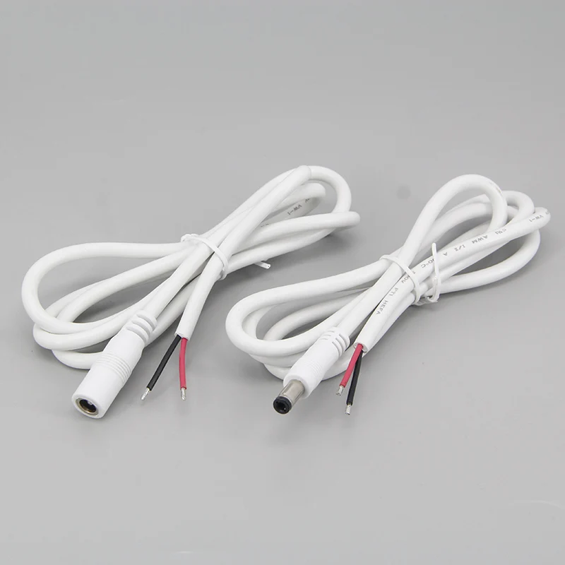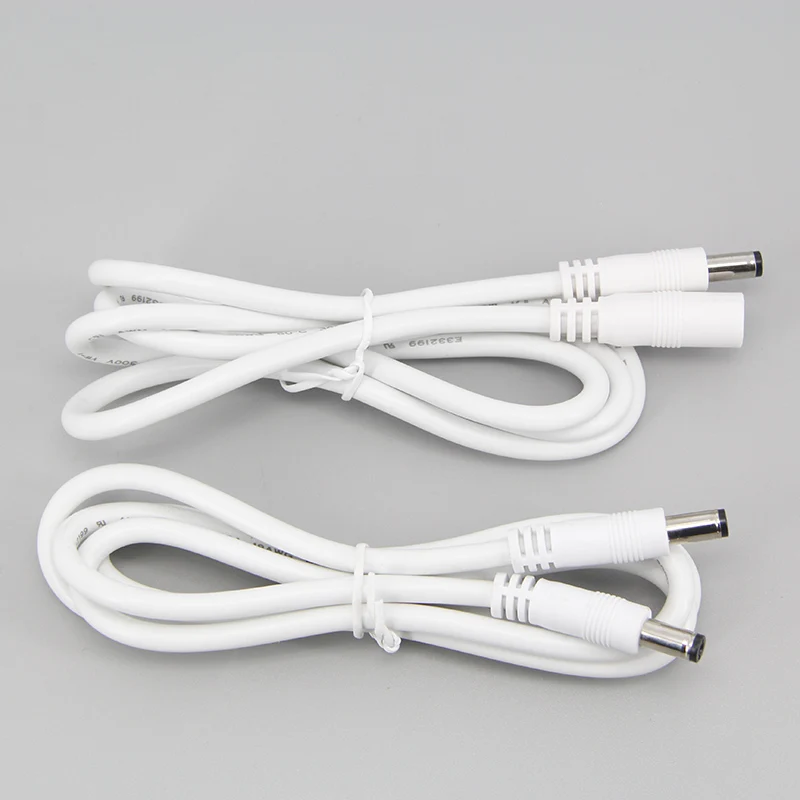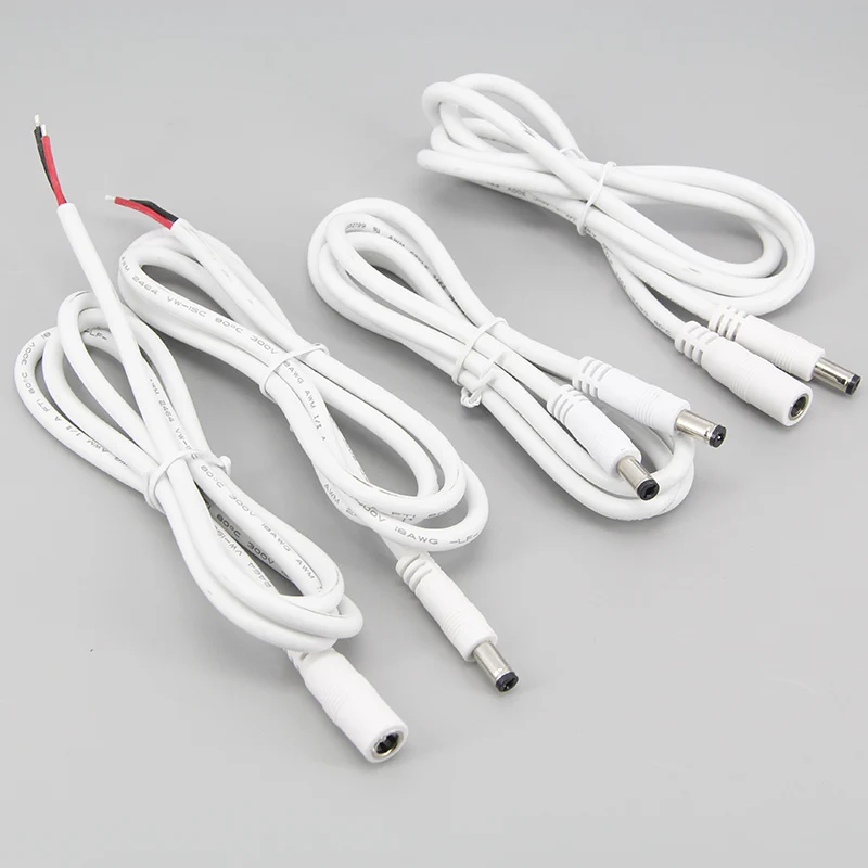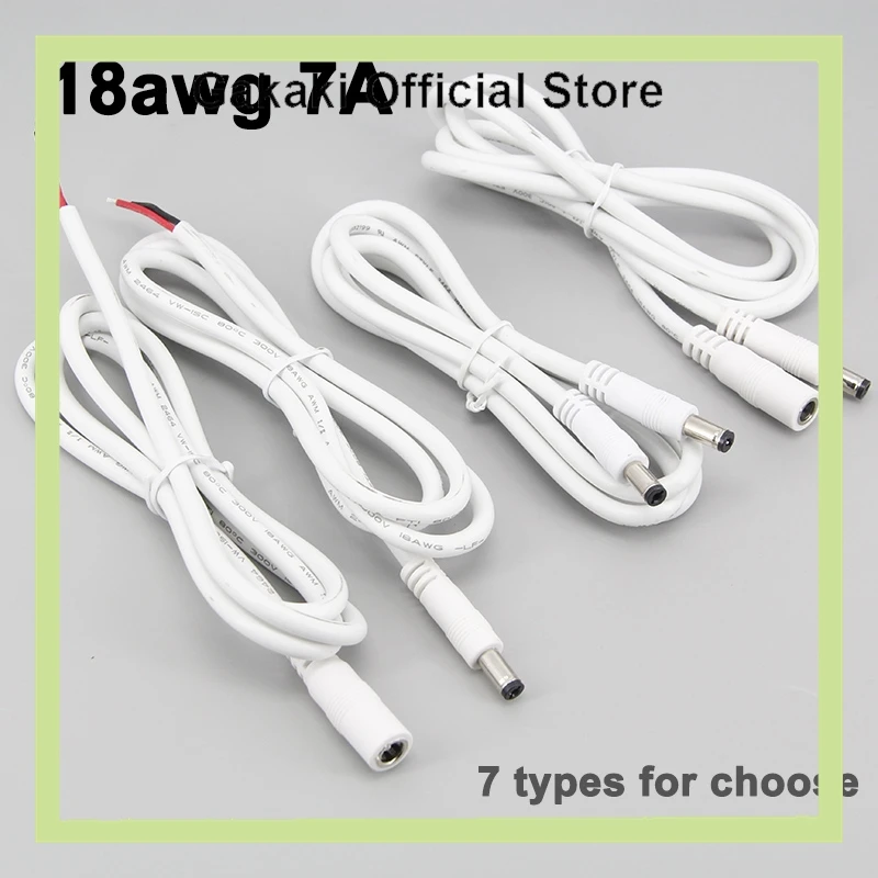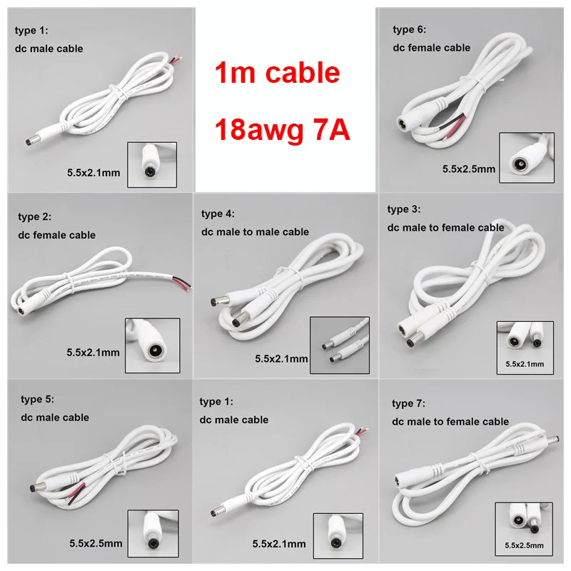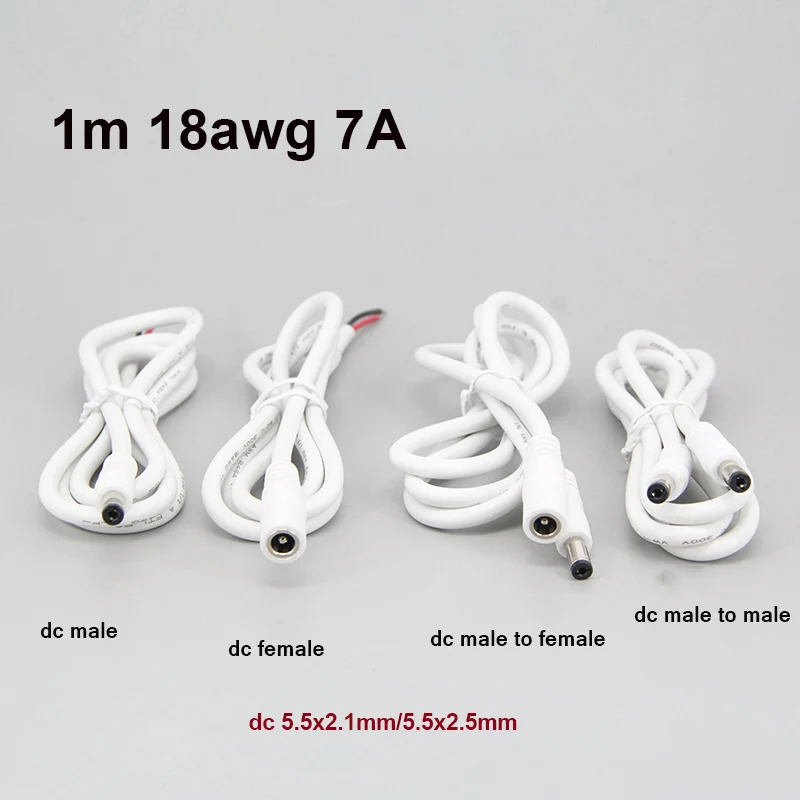 Blanco 1m 18awg 7A DC macho hembra conector de fuente de alimentación Cable de extensión 5,5x2,1mm 5,5x2.5mm alambre de cobre para tira de luz LED