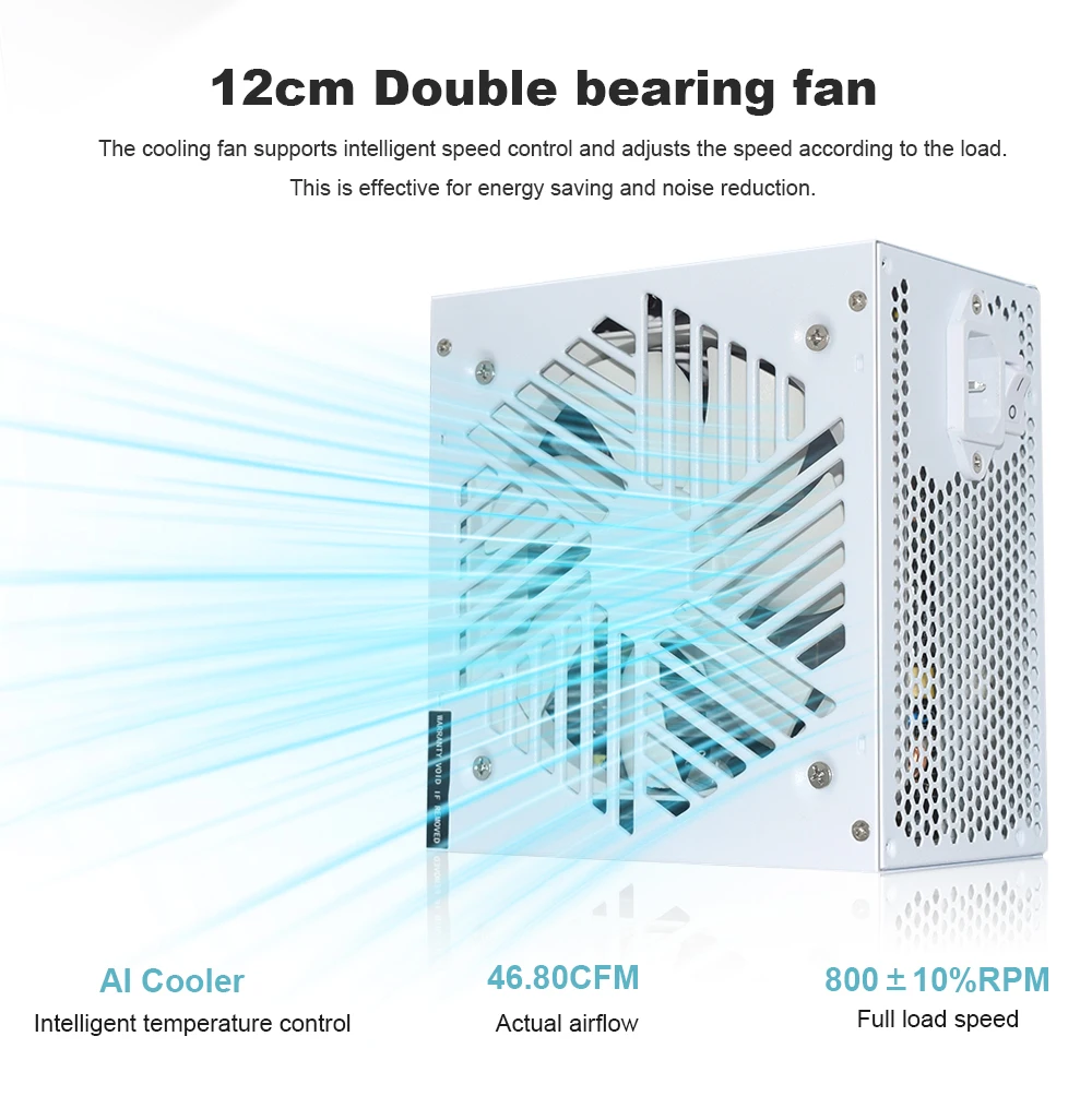 Blanco ATX 850W completamente modular 12V deportes electrónicos profesionales PSU 80Plus oro 20 + 4 pines 1000W para ventilador silencioso juego fuente de alimentación de ordenador