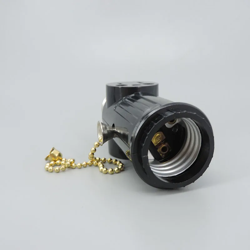 Interruptor de cadena de tracción E27 E26 de baquelita, blanco y negro, enchufe de bombilla de EE. UU., Base de conversión de portalámparas de 3 vías, 10A, 250V, 1, 1, 2, 1, 1, 2, 1, 1, 1, 10A, negro
