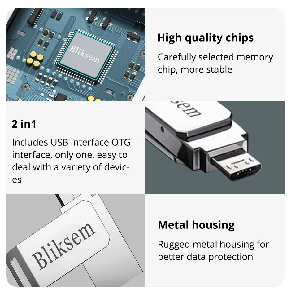 • Alta velocidad USB 2.0 :Este pen drive Bliksem OTG ofrece una alta velocidad USB 2.0, permitiendo un transferencia de datos rápida y eficiente entre su PC y su dispositivo móvil.