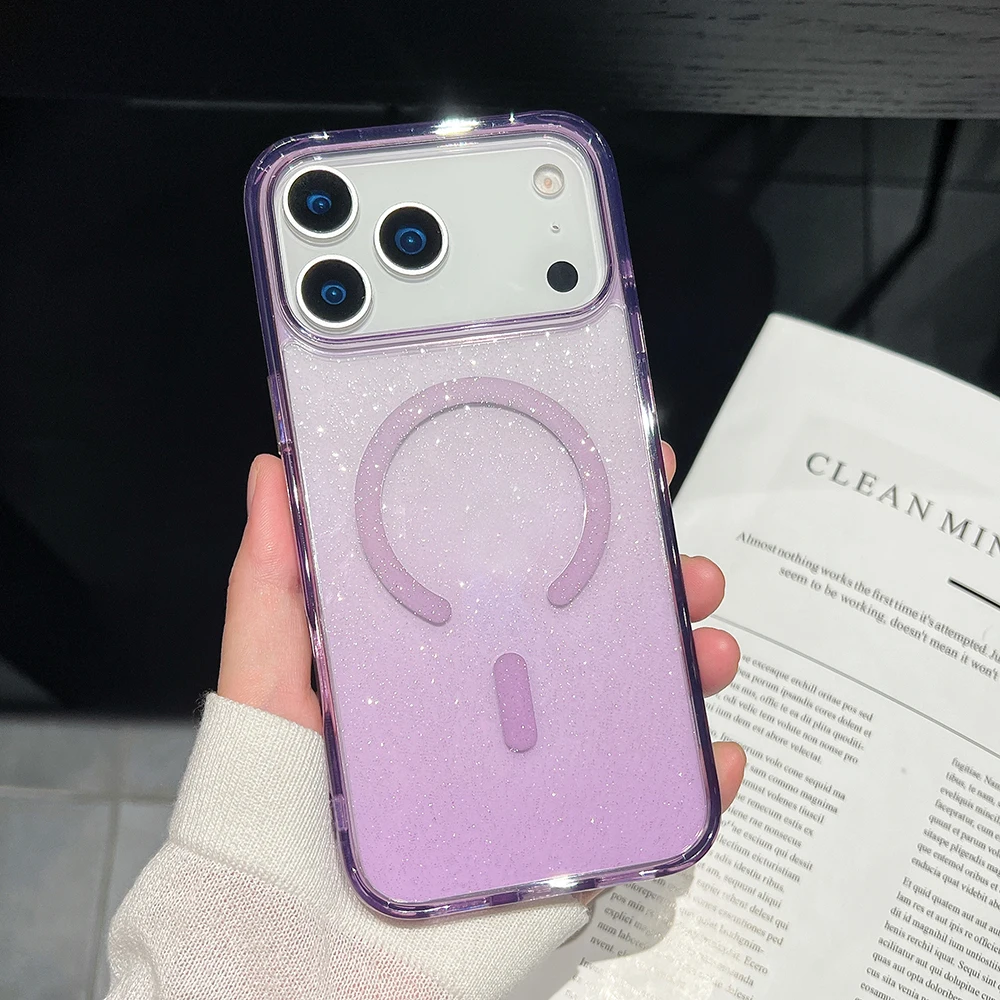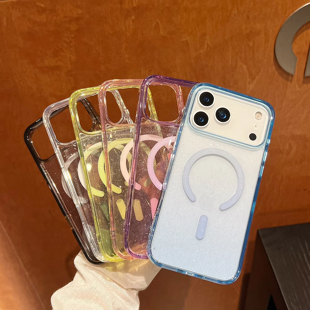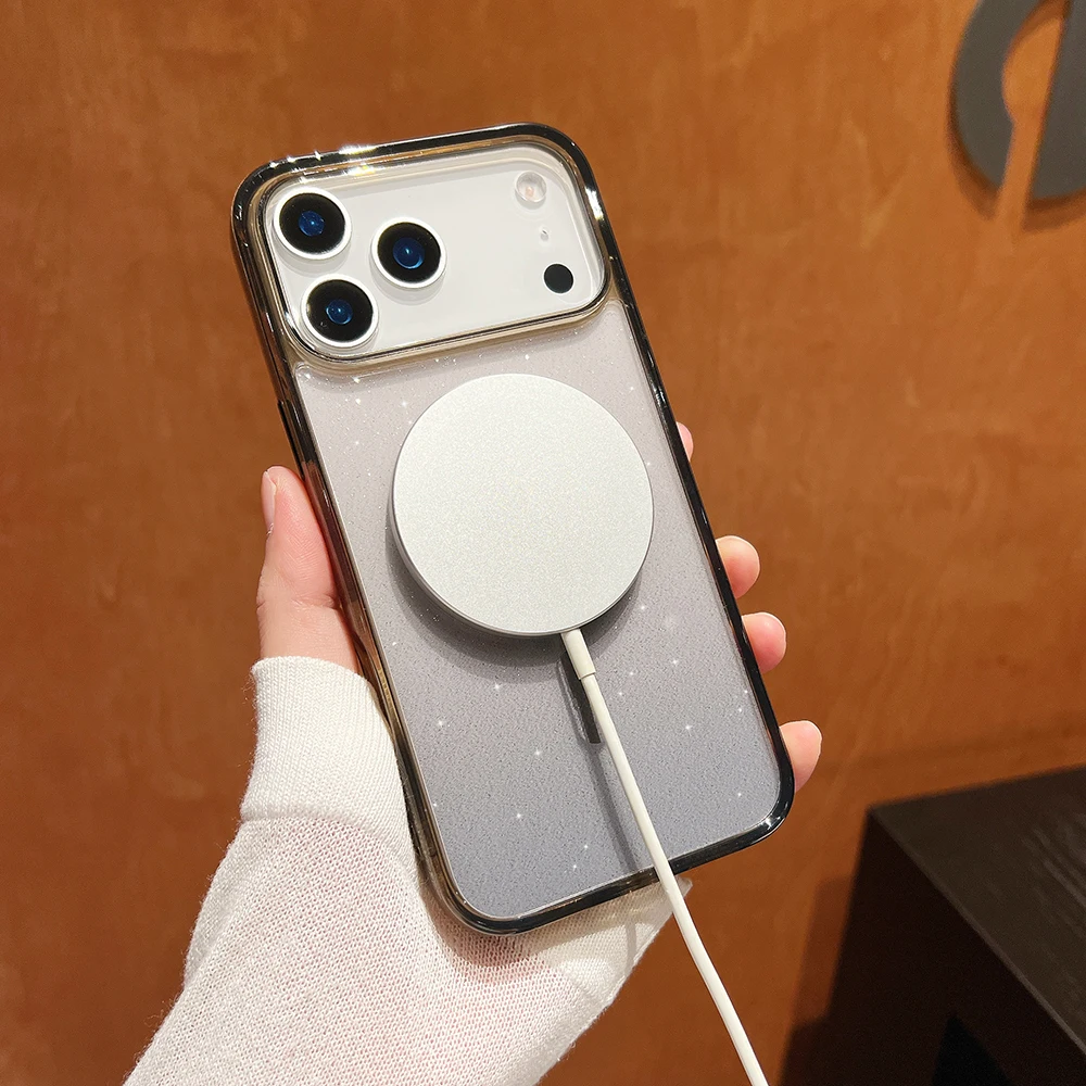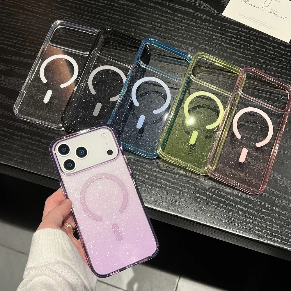Comprar Bling Glitter 17 Pro Max funda transparente magnética para IPhone Air 16 15 14 13 Pro Max 17Pro Ins cubierta suave de gradiente de carga inalámbrica