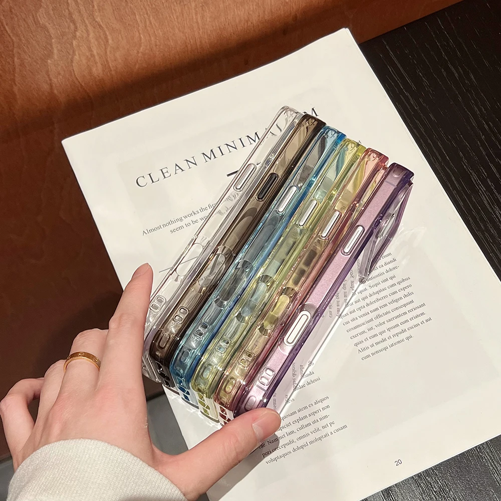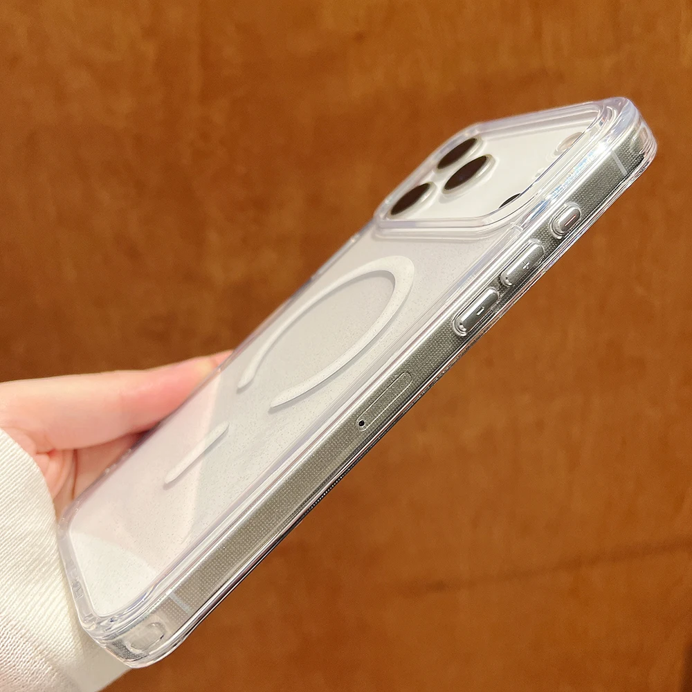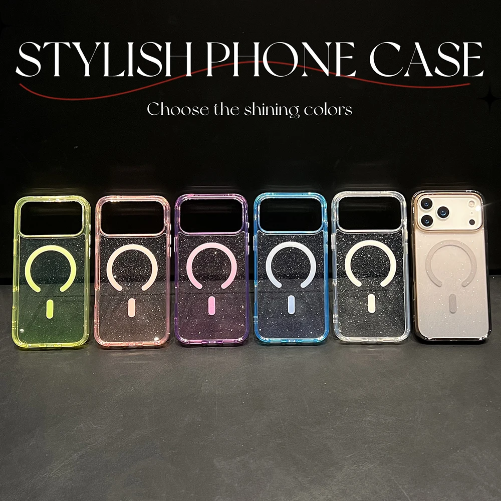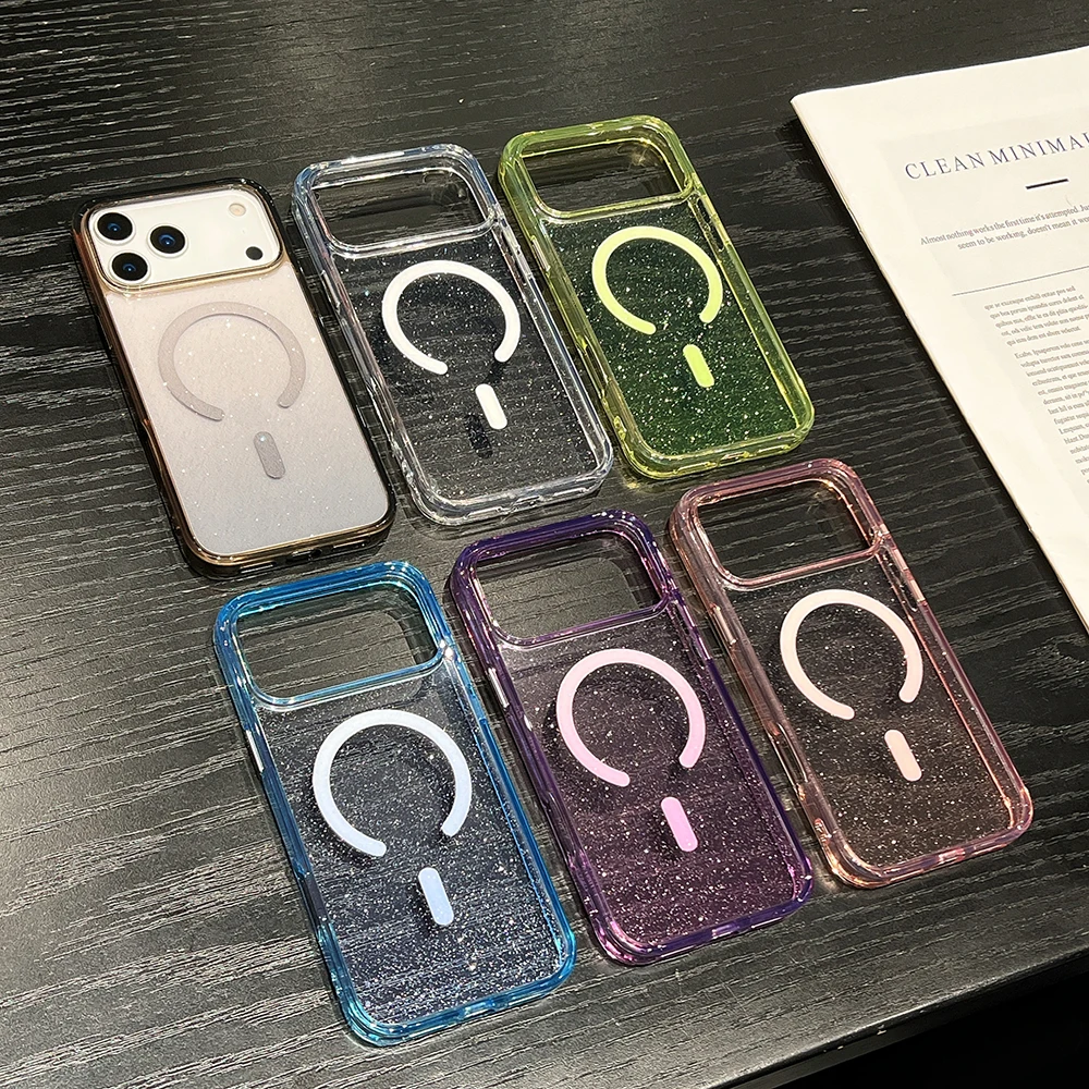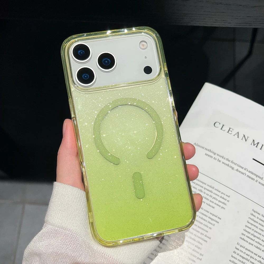 Comprar Bling Glitter 17 Pro Max funda transparente magnética para IPhone Air 16 15 14 13 Pro Max 17Pro Ins cubierta suave de gradiente de carga inalámbrica
