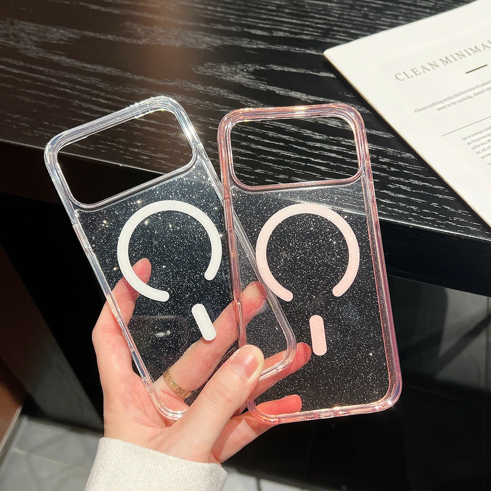 Bling Glitter 17 ProMax funda transparente magnética para IPhone Air 16 15 14 13 Pro Max 17Pro Ins funda suave degradada de carga inalámbrica