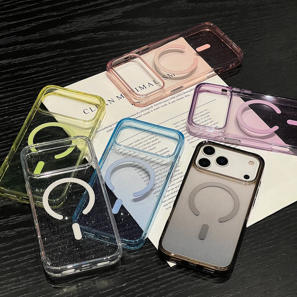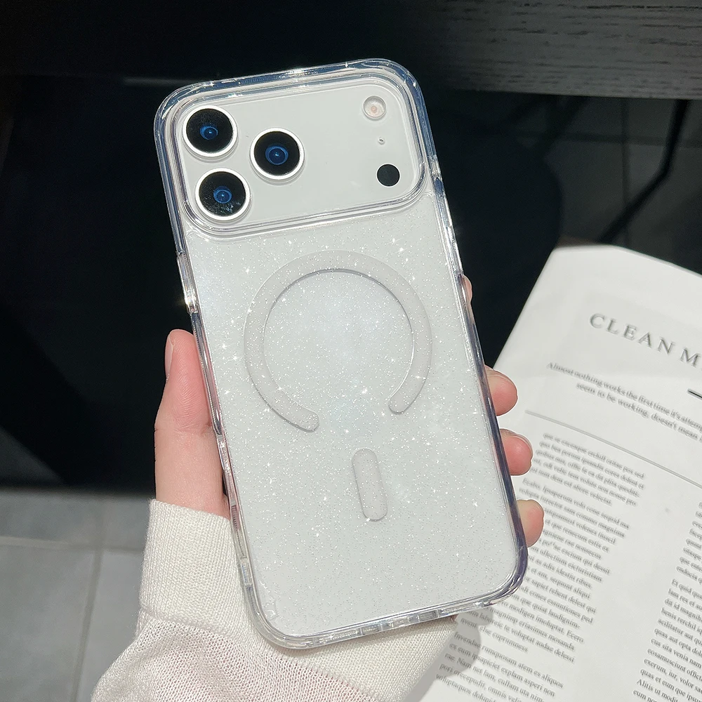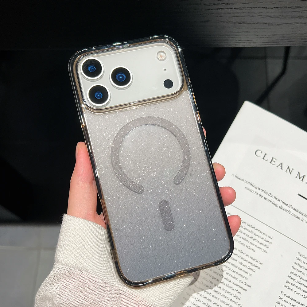Comprar Bling Glitter 17 Pro Max funda transparente magnética para IPhone Air 16 15 14 13 Pro Max 17Pro Ins cubierta suave de gradiente de carga inalámbrica