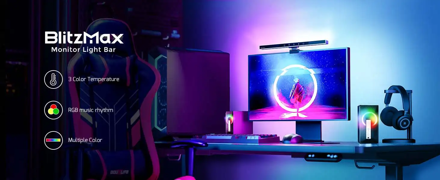 Comprar BlitzMax BM-CS1 RGB LED lámpara de escritorio pantalla regulable Monitor de ordenador de oficina barra de luz colgante para estudio lectura luz que cuida los ojos