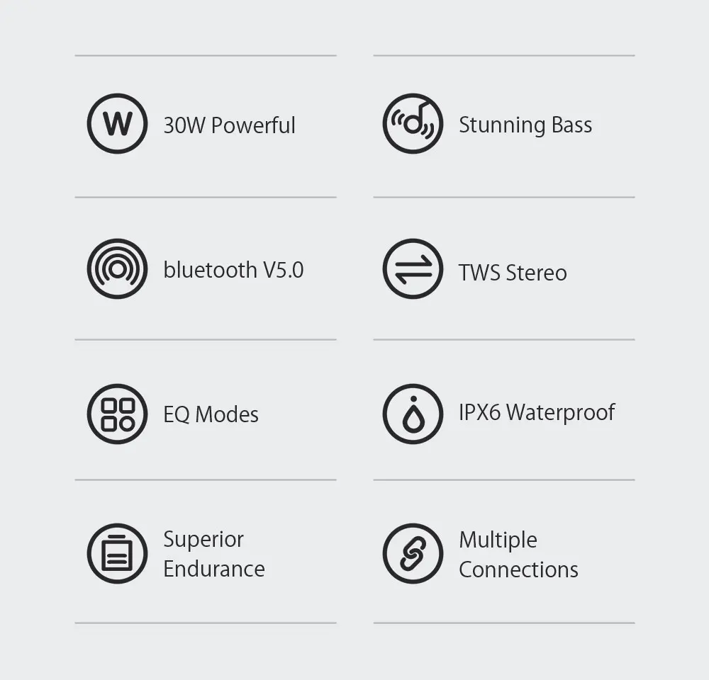 Potente potencia de 30 W, controladores dobles: disfrute de un festín parecido a un concierto lleno de graves profundamente mejorados y detecte detalles ricos.