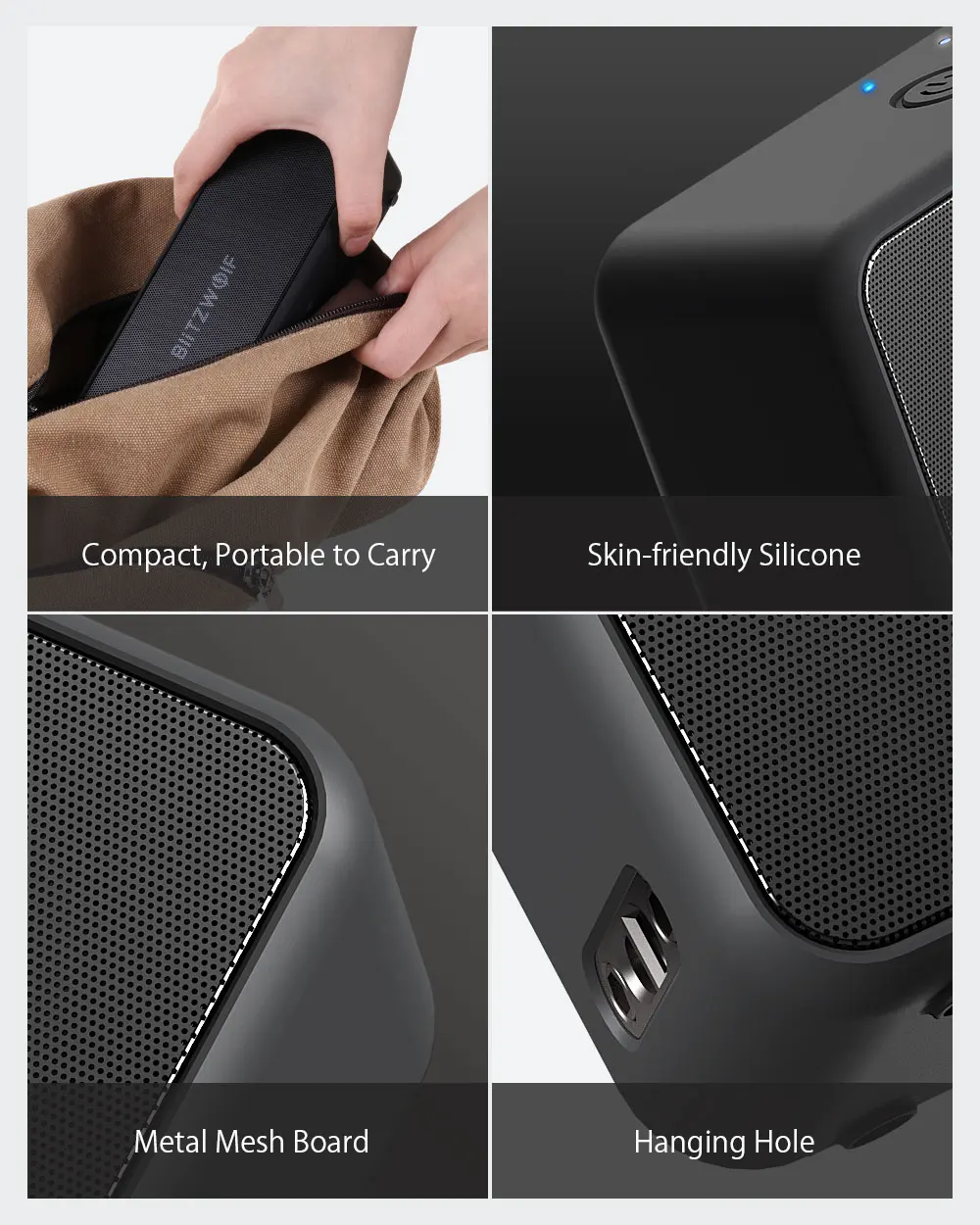 Compacto, portátil para transportar: el altavoz bluetooth portátil BW-WA4 se guarda fácilmente en su mochila y disfruta de la música al escalar, andar en bicicleta, acampar o en la playa.