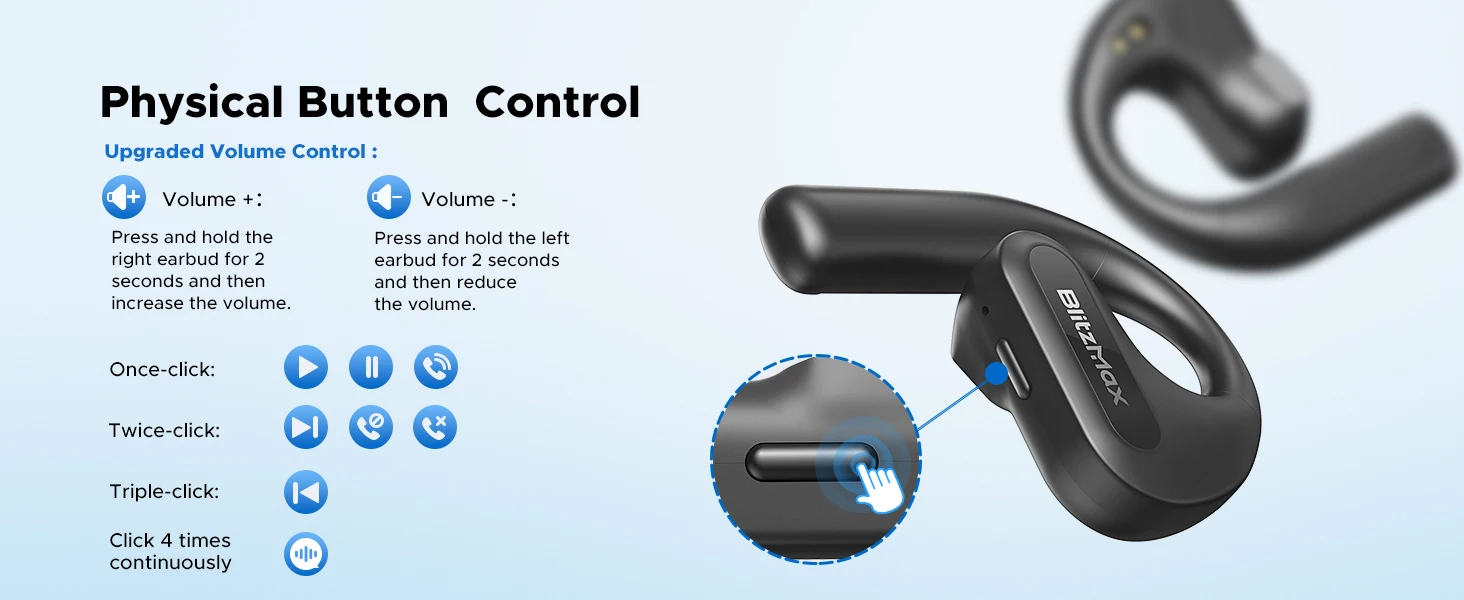 4. Compatibilidad versátil: los auriculares abiertos BlitzMax de la parte posterior de la son compatibles con una amplia gama de dispositivos, incluyendo teléfonos inteligentes, tabletas y ordenadores. También vienen con un conector de audio de 3,5mm, lo que los hace compatibles con la mayoría de los equipos de audio.