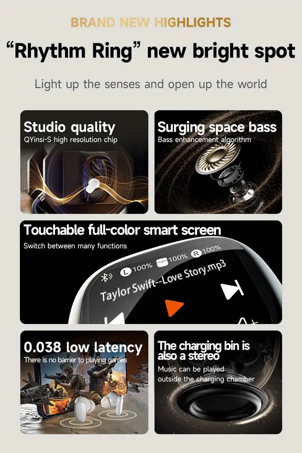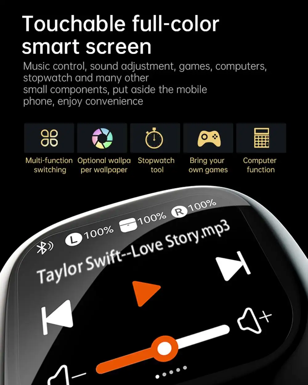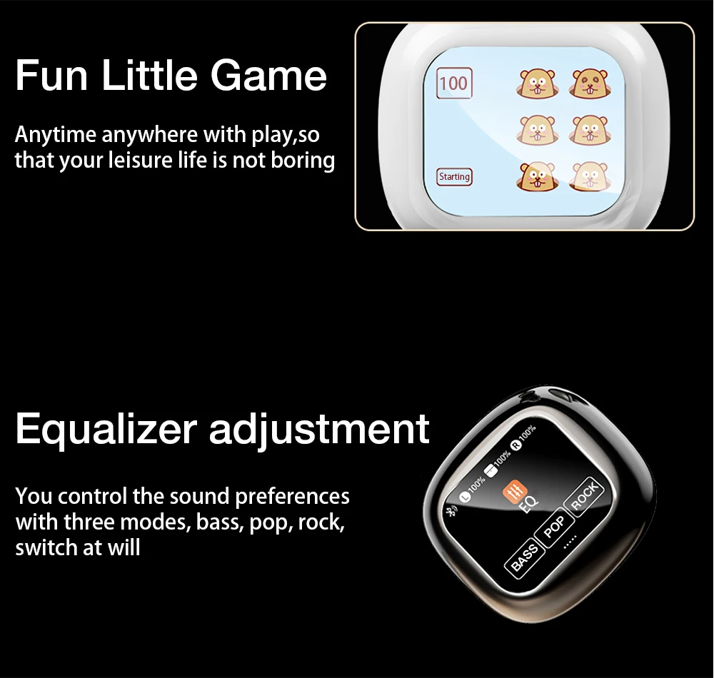1. Pantalla LED táctil: viene con una atractiva pantalla táctil LED a todo color, lo que hace que sea fácil y eficiente para que usted opere sus auriculares y navegue a través de diferentes funciones.